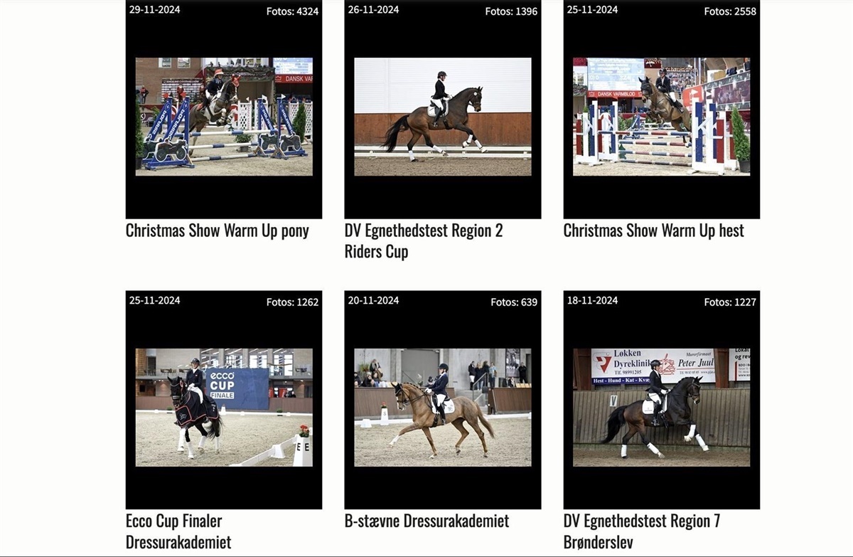 Ridehestens fotodatabase rummer et hav af flotte hestebilleder fra alverdens stævner og begivenheder i ridesporten, og der kan meget vel være et billede af dig eller en du kender, som kan bruges som en god og personlig julegave.