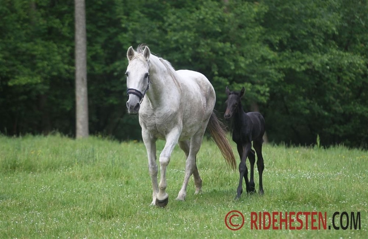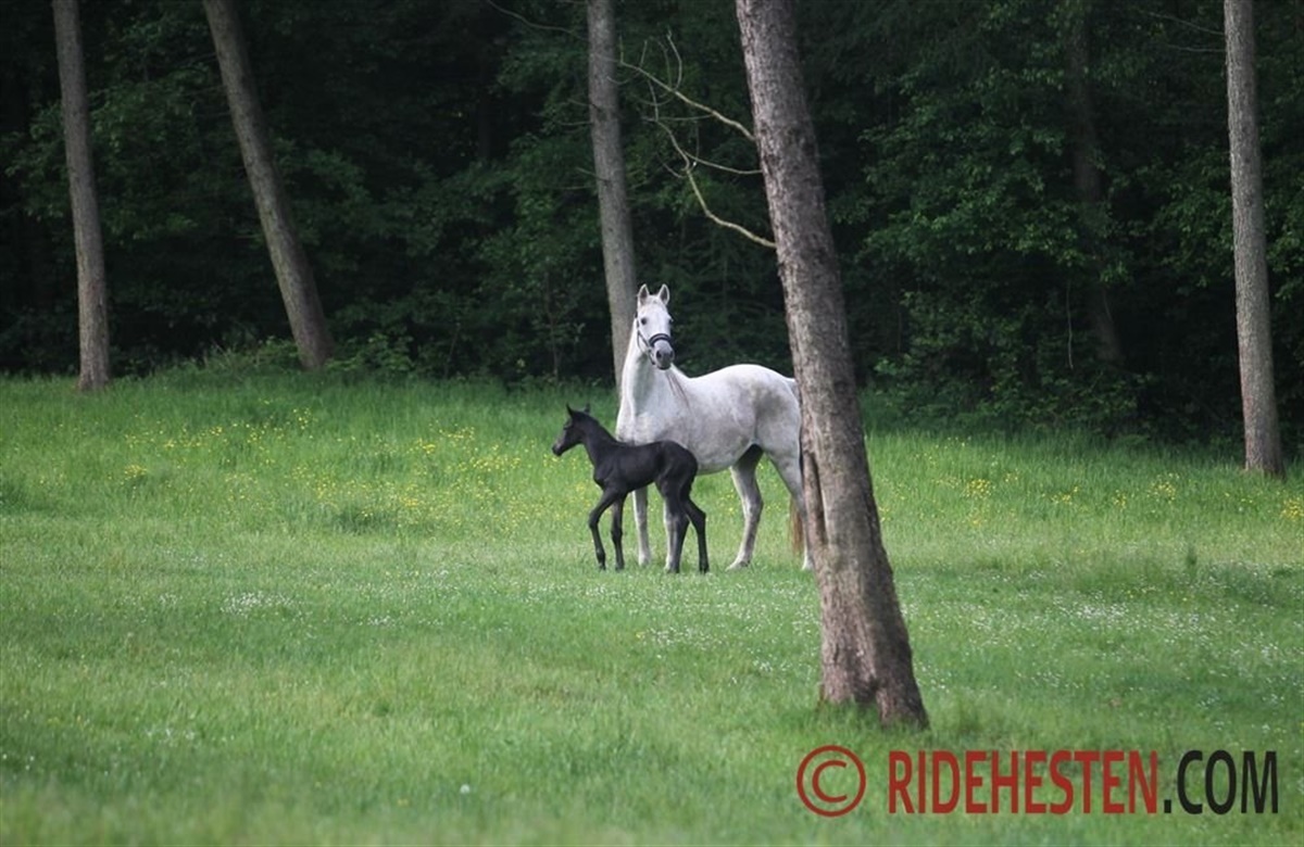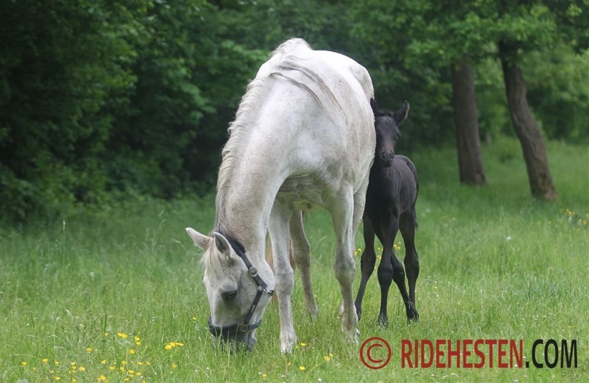 Bodil og Jan Pedersens et døgn gamle hoppeføl e. Grand Galaxy Win/ Blue Hors Romanov/ Aleksander har brug for en moderhoppe til at lære sig alt i livet, men den 16-årige elitehoppe Kirkelodgaard's Chascha e. Casir Ask/Lancier (opdrætter og ejer Charlotte Schiøler) ankom på Lundgaard sidst på dagen i går og er helt ny på matriklen.