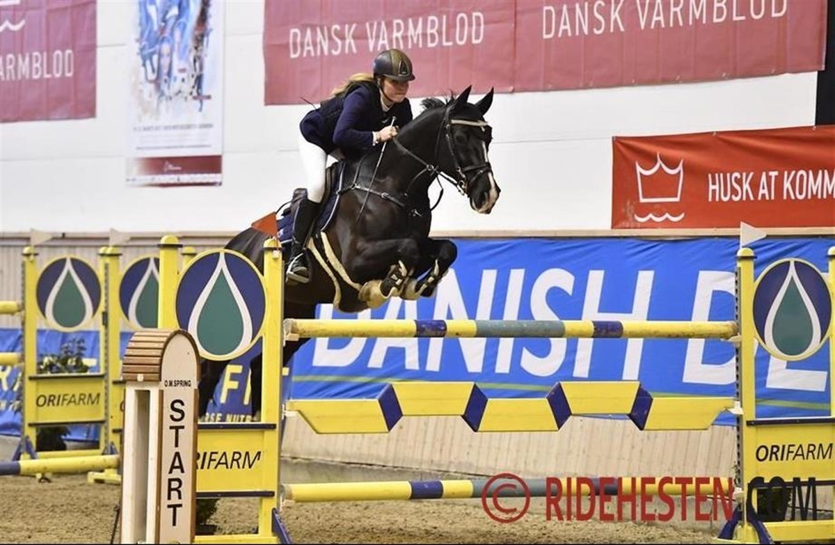 Jessica Toelstang red ind som dagens nr. 3 sammen med hesten Bjerglunds Campari e. Cajus/Cantona 2(opdr. Kirsten og Paul Petersen) med nul fejl i tiden 57.23 sekunder.