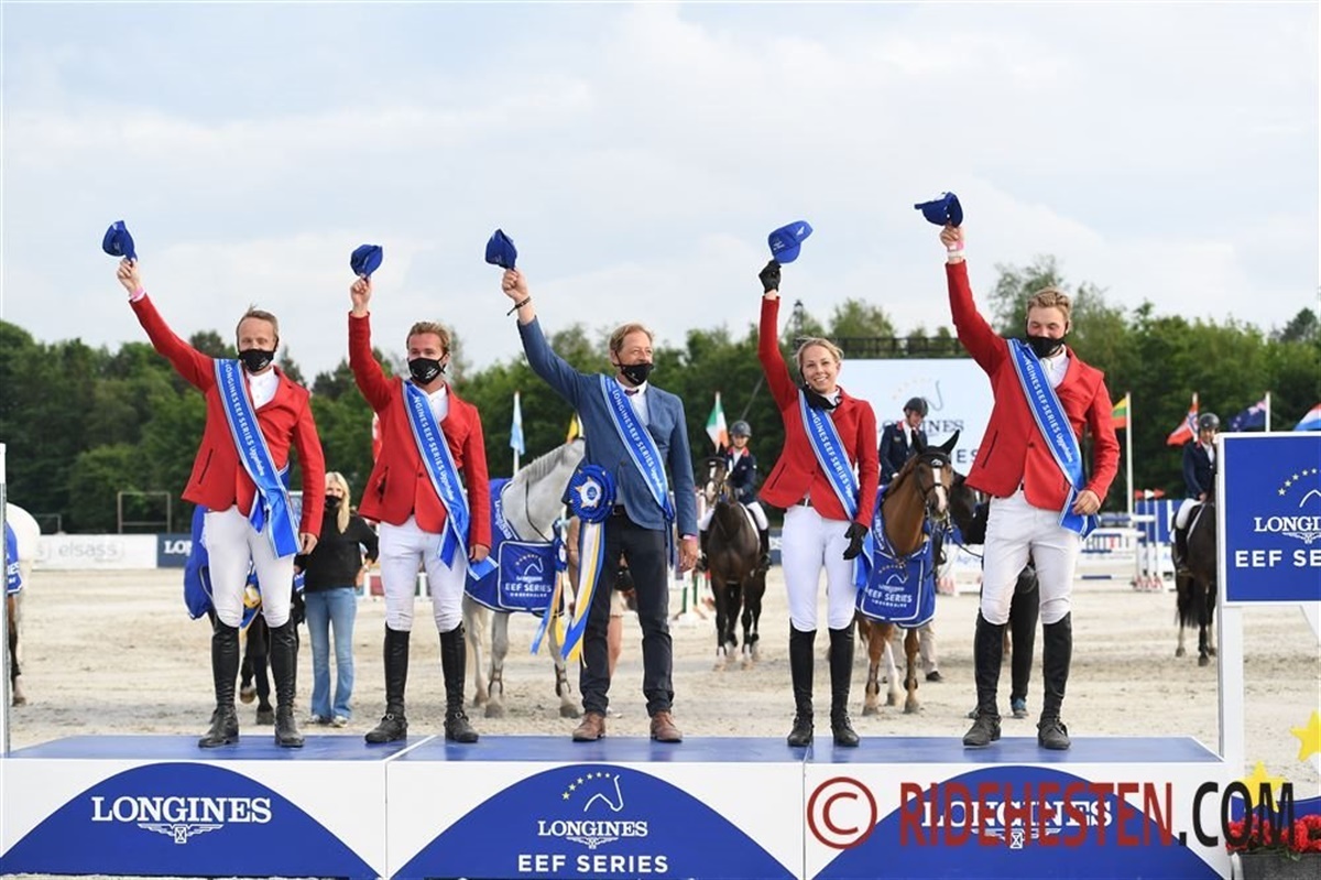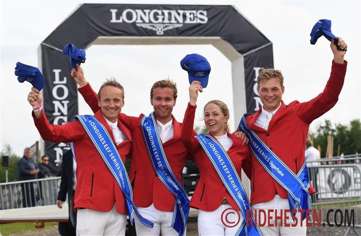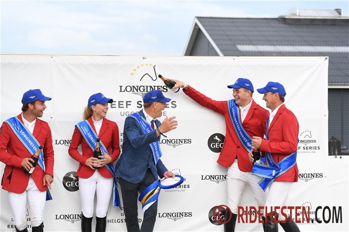 Dermed lykkedes det endelig det danske landshold at ride en sejr hjem i Nations Cup, efter de flere gange fornyligt er endt som nr. 2. Der var da også stor glæde at spore hos de danske ryttere, og landstræner Bo K. Møller, som i videoen nedenfor udtrykker sin glæde over sejren, og over, at Danmark nu har fået en plads i EEF Series-finalen.