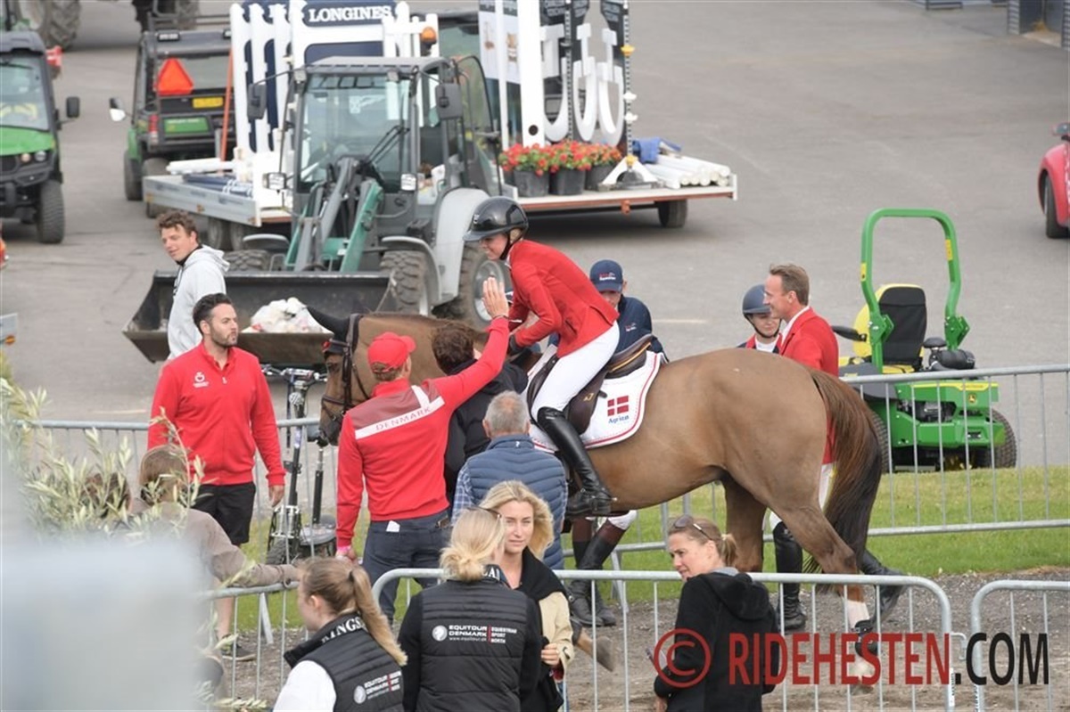 Rytterne på det danske hold, såvel som andre danske ryttere og hestefolk, der er tilstede i Uggerhalne, jublede sammen, og som I kan høre i videoen længere nede, så var det en stor oplevelse for Zascha at ride omspringningen for Danmark og ovenikøbet ride sejren hjem til sig selv og hele holdet.