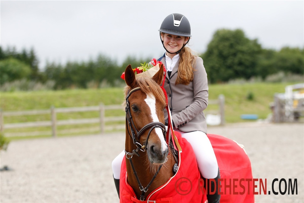 Weekendens sidste ponyklasse var en MB2**, hvor 1. pladsen gik til Helene Koldby på Lembckes Felix og 2. pladsen til Malou Kastberg på Rossenhof’s Déja Vu e. Verdi/Kantje’s Ronaldo (opdr. N. Ros).