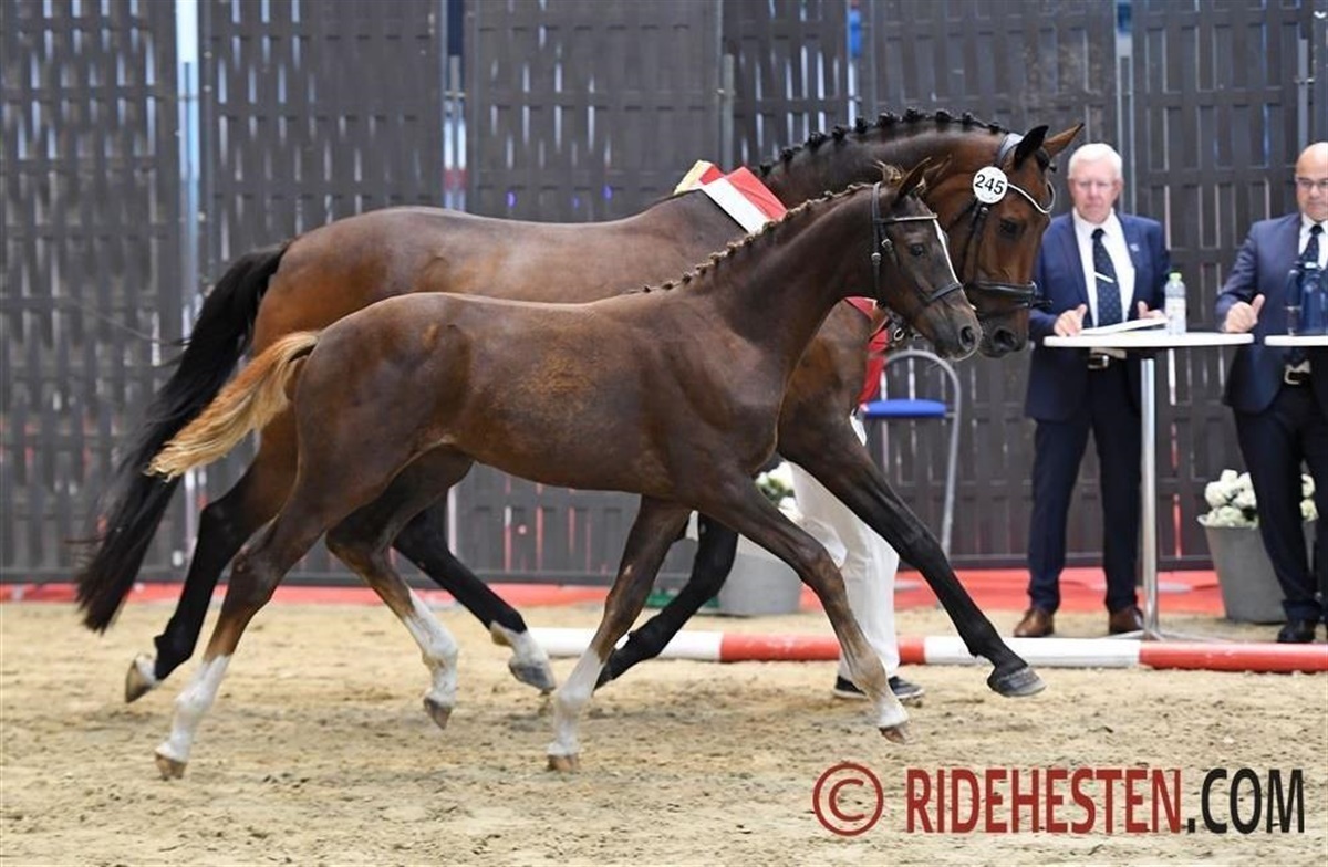 Det tog tid for dommerne at blive endeligt enige om fløjføllet i den meget flotte finalering for de dressurbetonede hingsteføl, men det lykkedes til sidst, hvor dommerne pegede på kat. 245 Grand Quest-Bell som dette års dressurbetonede hingsteføl i Dansk Varmblod. Et føl, der er helbror til præmiehingsten Giovanni Bell, og ligesom det var gældende for de dressurbetonede hoppeføl er her også tale om et føl, hvor Blue Hors Don Romantic er morfar.