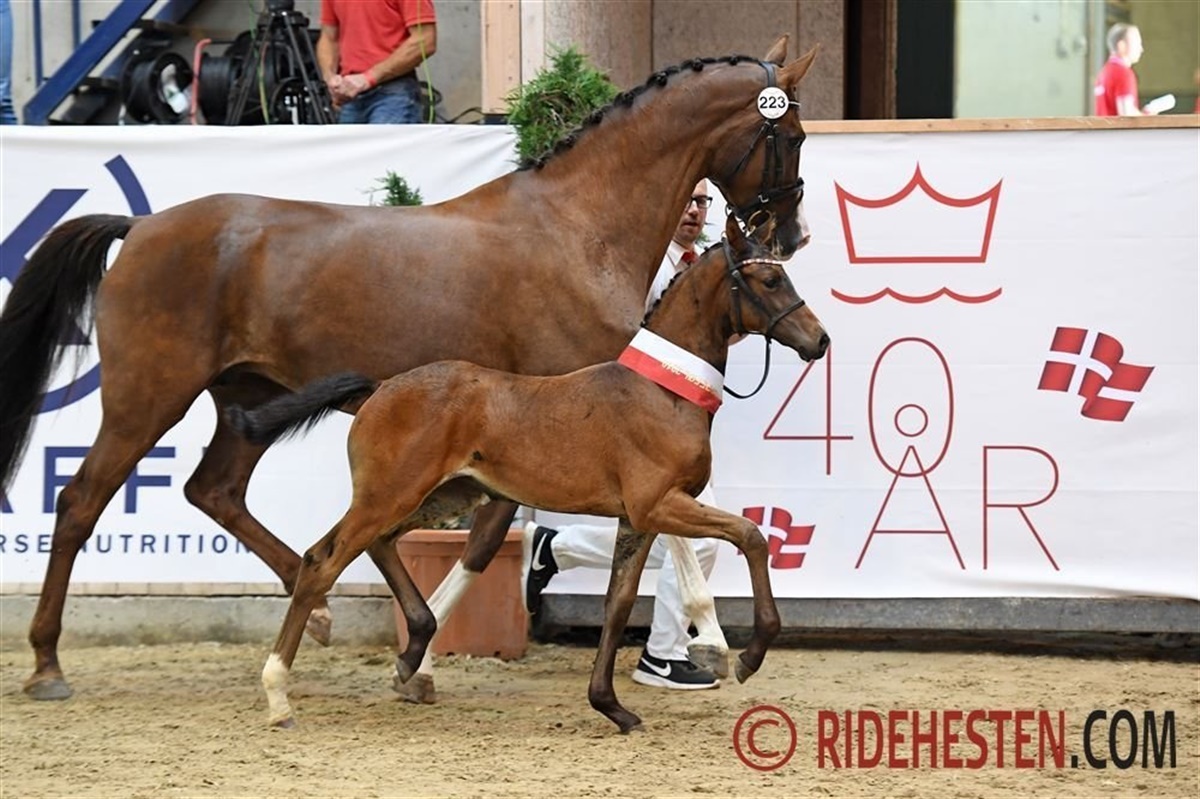 Ud af de fem smukke hoppeføl blev det kat. 223 Vilard’s Frina som dommerne udpegede som dagens fløjføl og dermed det bedste dressurbetonede hoppeføl i Dansk Varmblod i 2019. Hun var det ene af to Franklin-døtre i finaleringen, og samtidig også blandt de tre finaleføl, der havde Blue Hors Don Romantic som morfar.