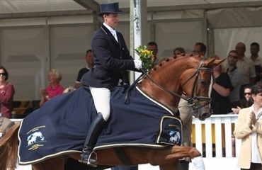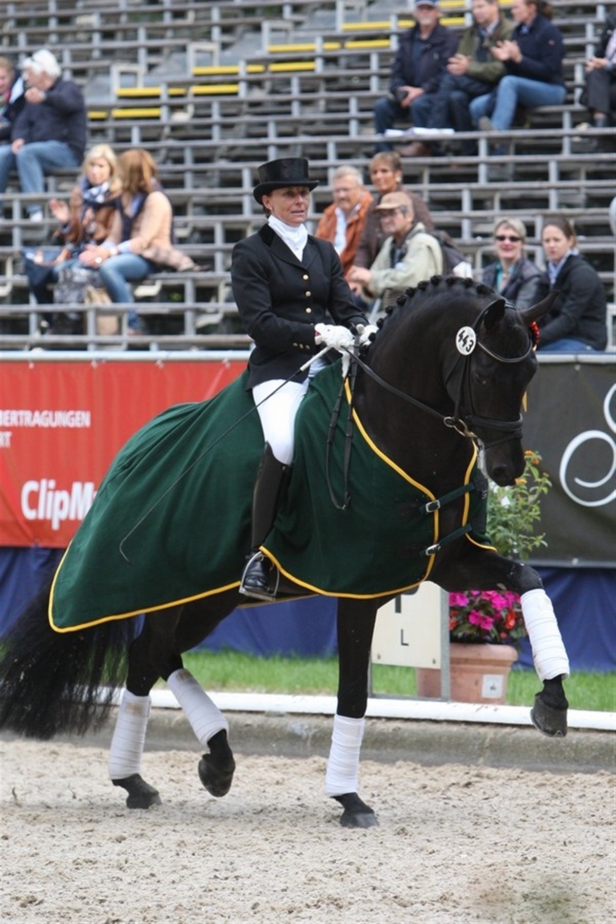 Den 5-årige Fürstenball e. Fürst Heinrich/Donnerhall (ejet af Lone Bøegh Henriksen og Paul Schockemöhle) viste sig i dag i Warendorf at være tilbage i storform og sejrede med komfortabel afstand i finalekvalifikationen under kyndig fremvisning af Ines Westendarp. Hingsten blev belønnet med karaktererne 10 for trav, skridt 8,5, galop 9,0, galop 9,0 samlet indtryk 9,5, hvilket i alt gav en score på 9,2. Andet bedste resultat blandt de 58 konkurrenter opnåede norske Isabell Bache med vallakken Fairytale e. Fidertanz/Quattro B, der sluttede på 8,6. De elleve bedste ekvipage fra dagens klassement går videre til finalen på søndag. Fredag byder trøstfinalen på fornyet håb for dem, der ikke nåede med videre, heriblandt er danske Daniel Bachmann med hingsten Flanagan e. Fidertanz/Rubiloh.