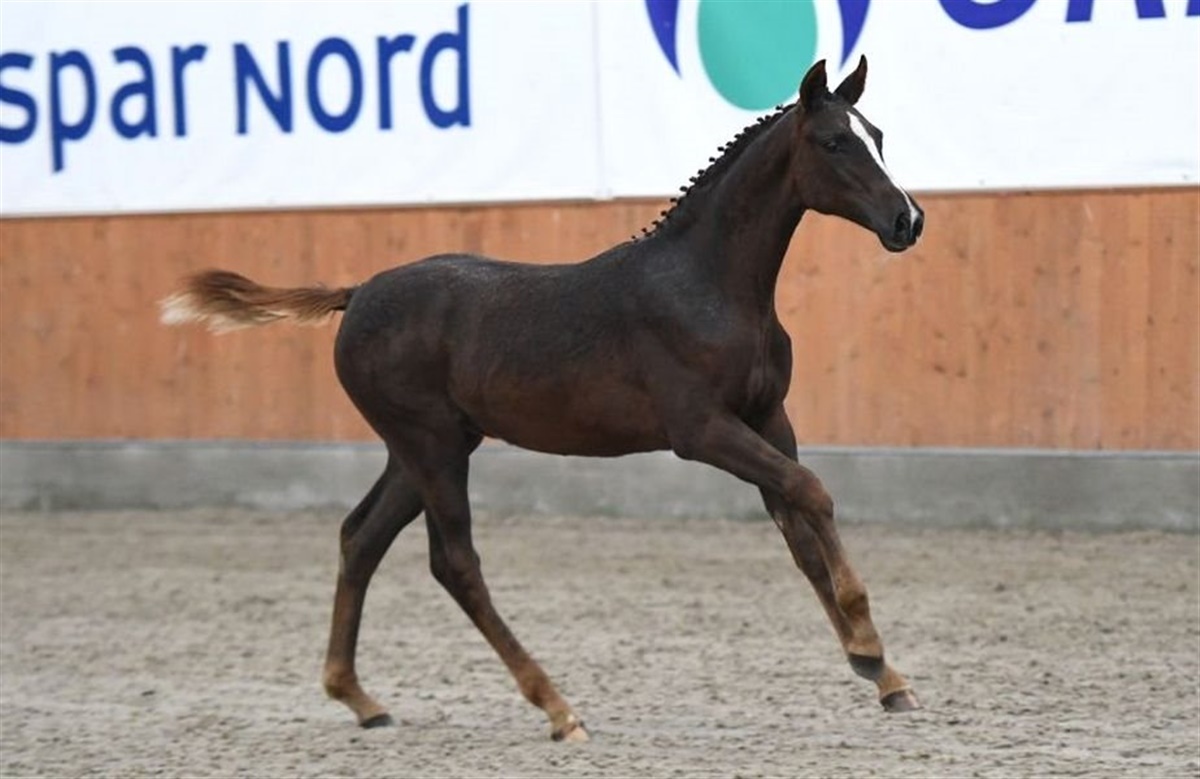 Lausanne H e. Untouchable/ Louvre S/ Concorde: Et velproportioneret og indtagende hoppeføl. Hun har en jordvindende og super praktisk galop, med en eminent balance. Hun er trukket på den anerkendte og velrenomerede Nimmerdor-hoppestamme, som kommer fra den succesfulde DV-avler Carsten Carstensen. Hendes mor, Laura havde sidste år et afkom med på eliteauktionen, som blev solgt til USA…..