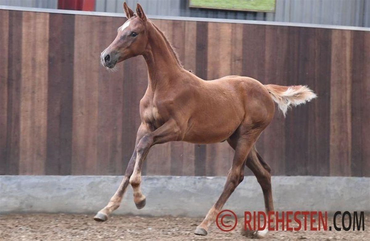 Dunhammergaards Sacre Ceur e. Perignon/ Carano/ Limaro: Dunhammergaards Sacré Ceur er et smidigt og velproportioneret hoppeføl med et dejligt årvågent udtryk. Hun har en tiptop balance og en adræt og kvik-ad-jorden galop. Hendes mor, Mon Ceur, er kåret i RDH og gik på fløjen som 4 års. Hun springer med utrolig stor kapacitet, forsigtighed og mod, og blev også udtaget til 4 års championatet i spring på Vilhelmsborg….