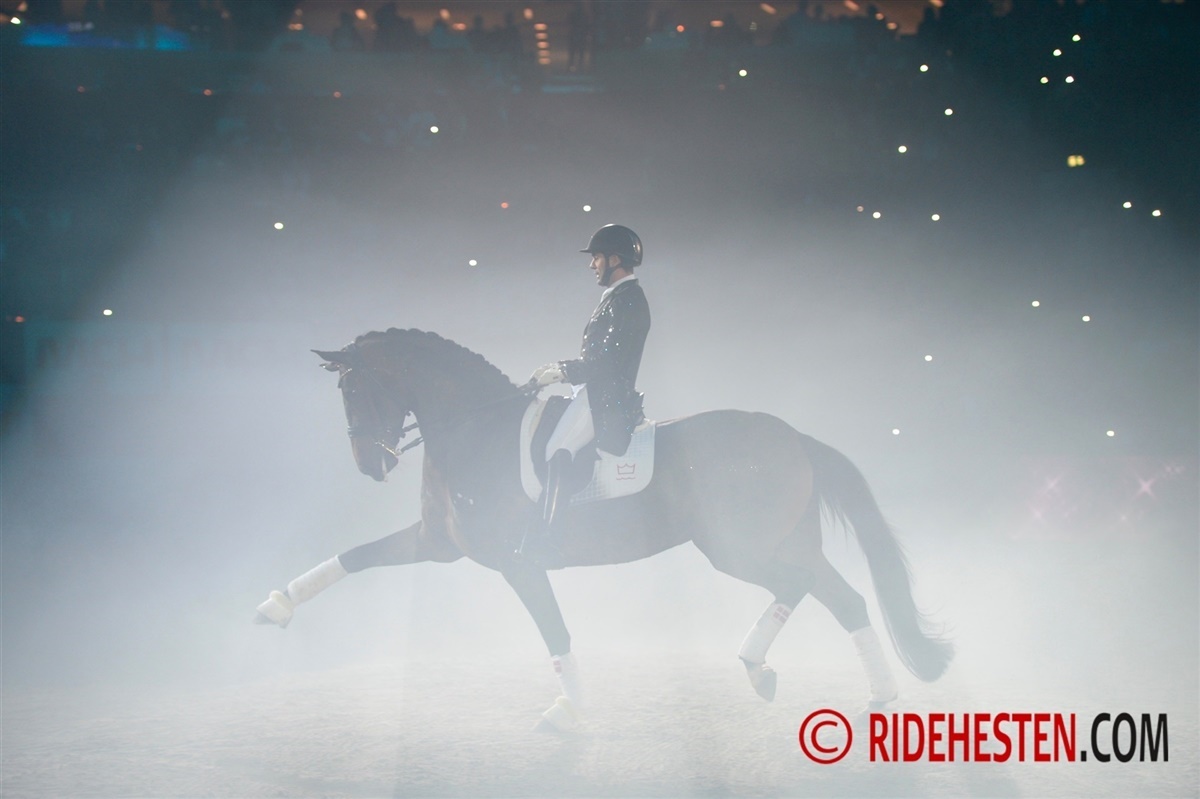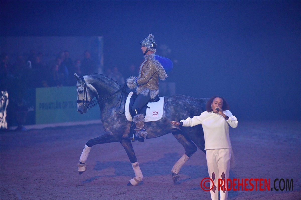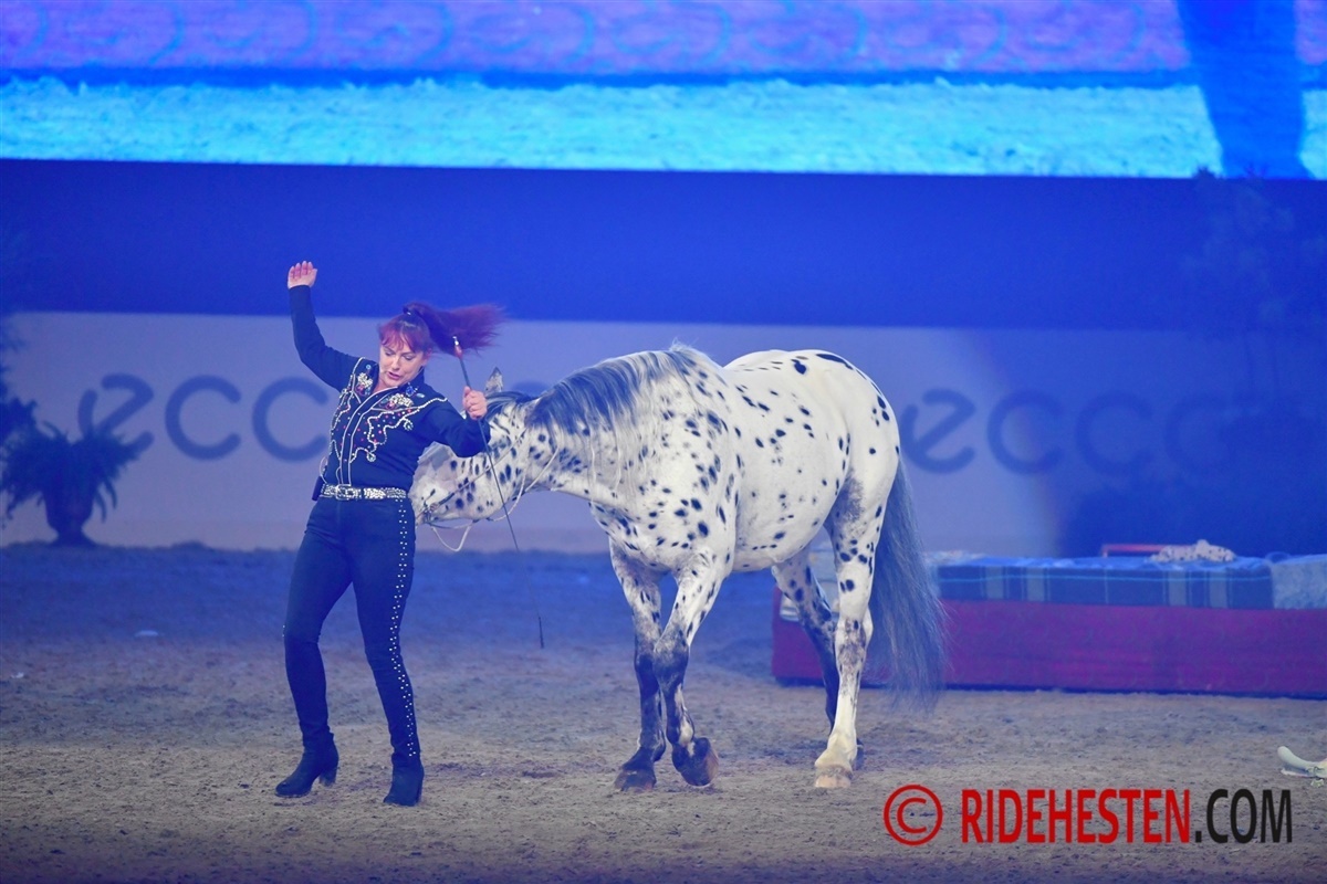 Alle tilskuerpladser var besat, da gallashowet her til aften begyndte til Dansk Varmblods Hingstekåring. Med et tema, som gik jorden rundt, fik tilskuerne hesteoplevelser fra Island til det vilde vesten. På rejsen blev showet krydret med artister som Barbera Moleko og Rosi og hendes hest, Scout.