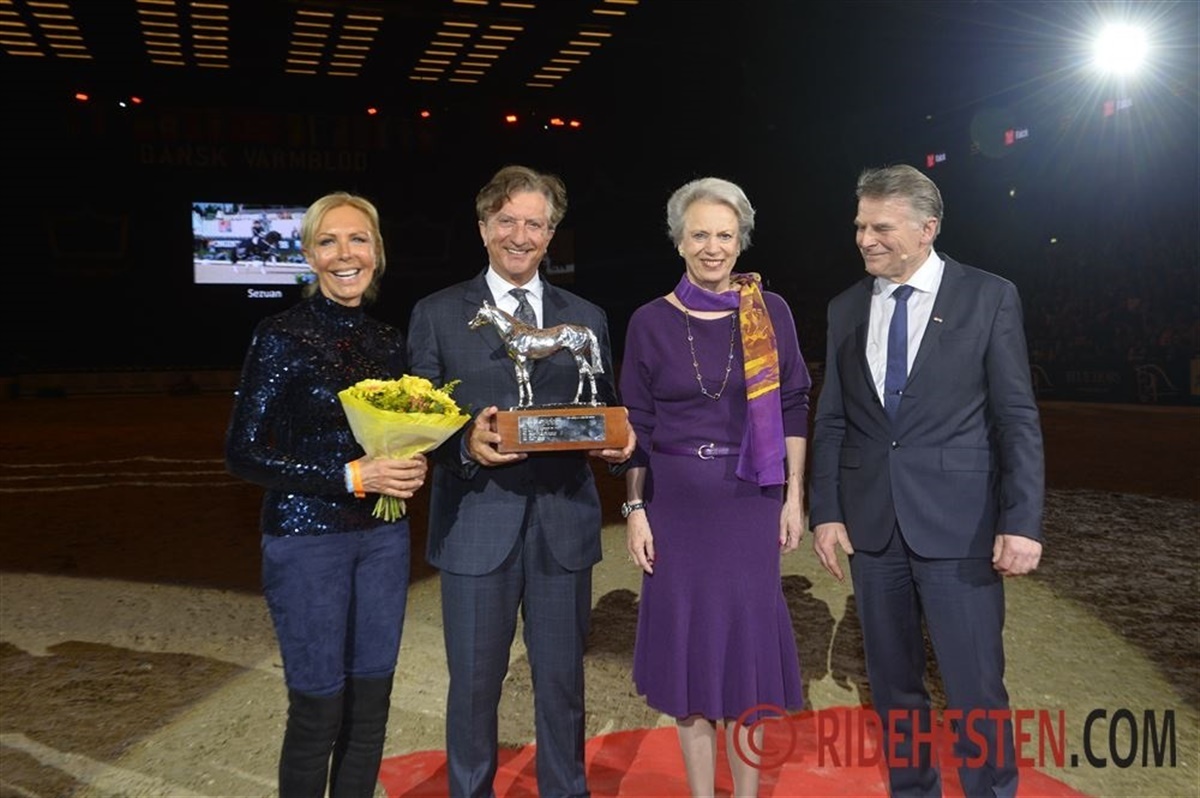 HKH prinsesse Benediktes ærespris blev givet til verdens bedste Sezuan, og det var også Jan Pedersen det gratulerede hingstens ejere ægteparret Jasper-Kohl fra det tyske stutteri Peterhof.