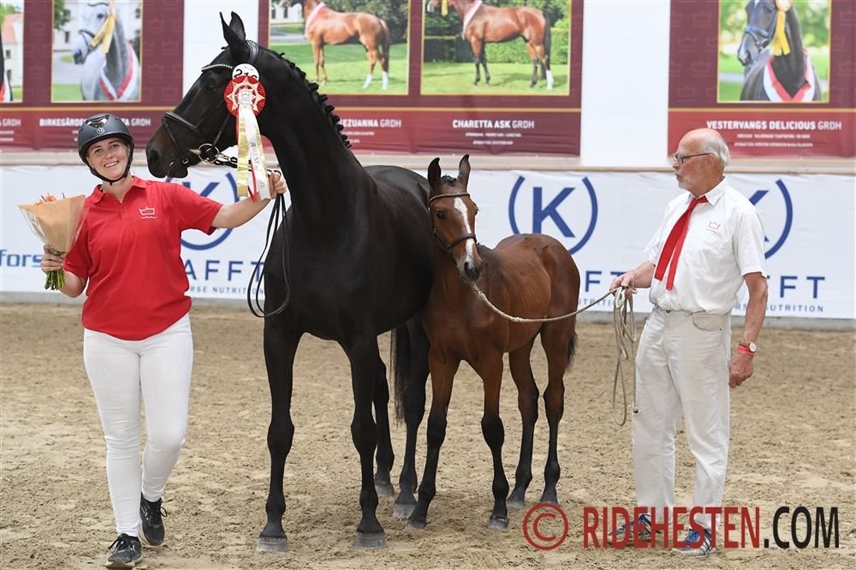 Moren til dette føl er selv B-hest i springning, mens mormoren til dette føl selv er elitehoppe og mor til hele fire afkom, der er B-hest i springning.