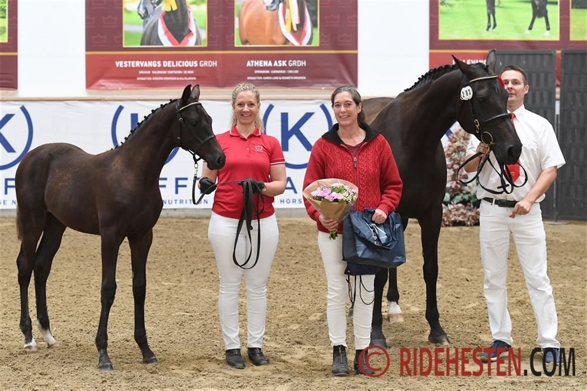 Lena og Ulrik Kristensen, der er opdrætter af det smarte hoppeføl, som også kan erhverves på Eliteauktionen i aften, var selvfølgelig glade og i videoen nedenfor kan I høre hvad Ulrik har at fortælle om føllet.