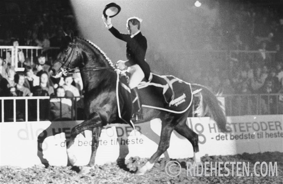 – Jeg så hingsten første gang i 1983 til et jubilæumsstævne i Aabenraa Rideklub. Jeg var i og for sig ikke imponeret af hans uddannelsesniveau, men jeg kunne godt lide hesten. Hingstens ejer, Chr. Jørgensen, fik mig overtalt til at prøve den, og siden også til at tage den i ridning, erindrer Nis Valdemar Hansen. – Vi skulle have haft vores stævnedebut i 1984, men jeg gik desværre hen og brækkede anklen, fordi jeg væltede med en hest. Derfor var det min daværende elev Bjarne Elefsen, der red hingsten i en LA-klasse i Herning det år og også ved enkelte stævner derefter. I Herning havde den fået tohundrede-nogenog-firs point, hvilket var helt fantastisk. Det var nok medvirkende årsag til hans store popularitet som avlshingst i de år.