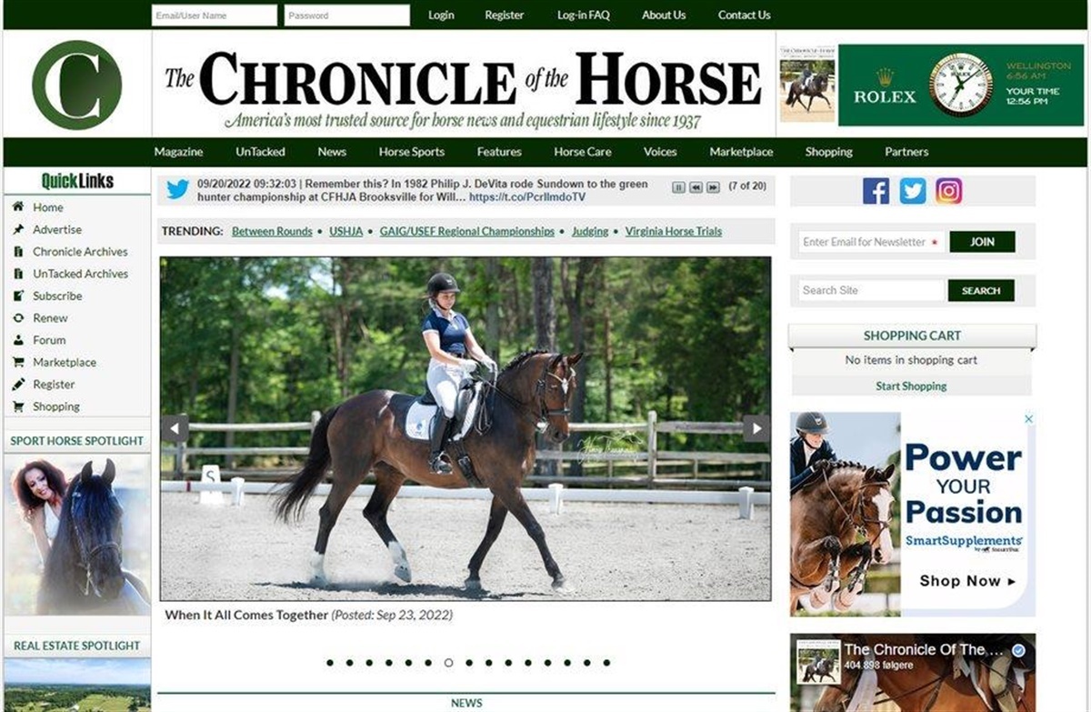 Chronicle of the Horse, som nu kan fejre 85-års jubilæum, er en af de ældste og mest respekterede udgivelser i hesteindustrien. Mediet sætter tydelige spor på de sociale medier og har et af de største, online publikummer i branchen med millioner af unikke besøgende på sin hjemmeside årligt.