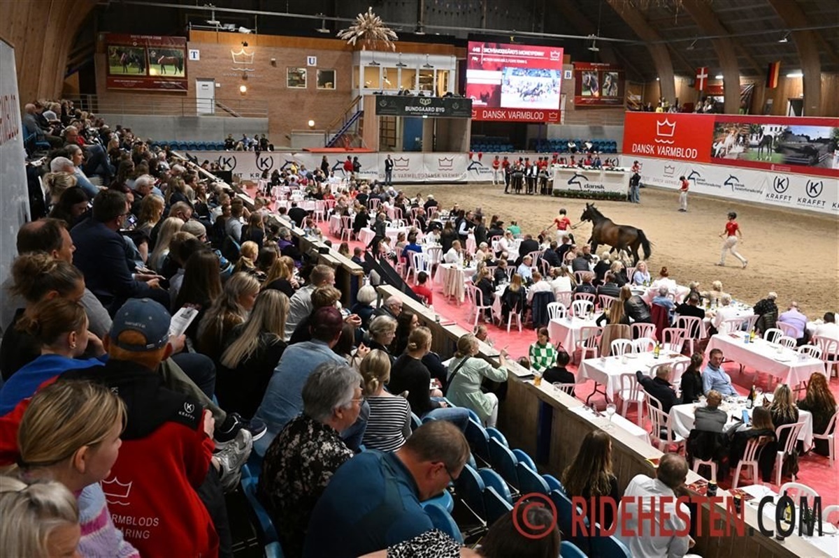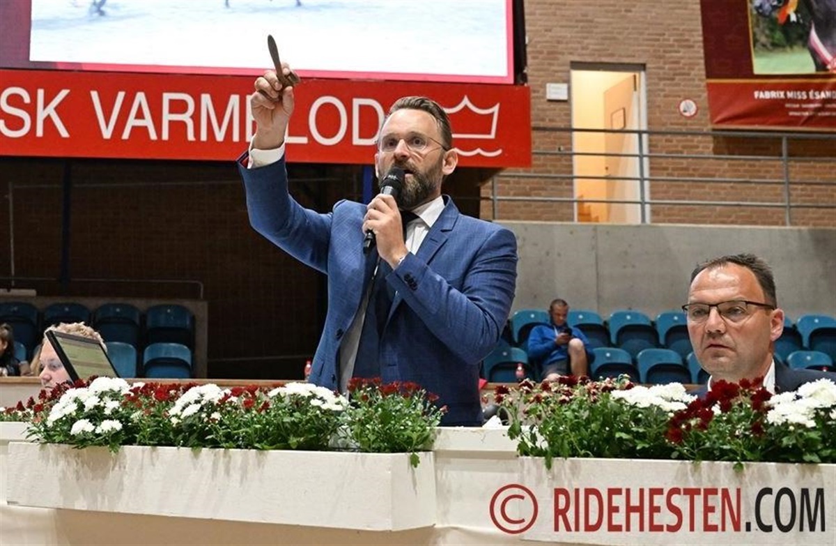 Auktionarius Casper Cassøe Krüth svingede hammeren over 53 udbudte føl på Dansk Varmblods Elitefølauktion præsenteret af Dansk Hesteforsikring. Der var en god stemning i hallen, hvor gæsterne til avlermiddagen hyggede sig op til og under auktionen. Desuden var mange mødt frem for at følge auktionen fra tilskuerpladserne.