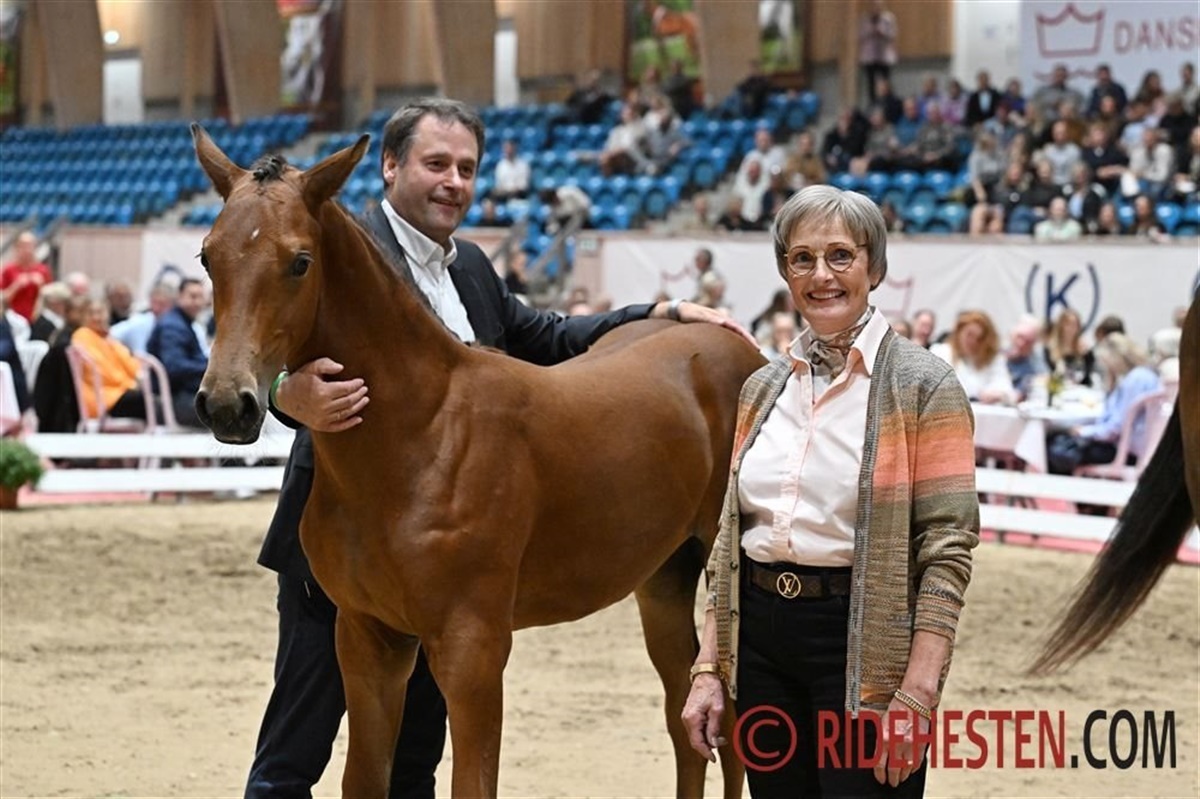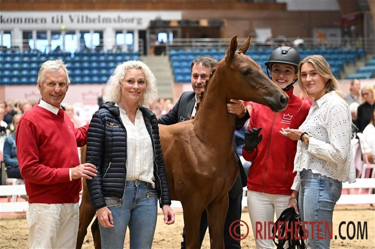 Helgstrand Dressage fik bl.a. hammerslag på Baunehøjens Denver e. Dynamic Dream/Jovian, et herligt hingsteføl, hvorfra præmiehingsten Baunehøjens Jackson også stammer. Hammerslagsprisen blev 33.500 Euro.
