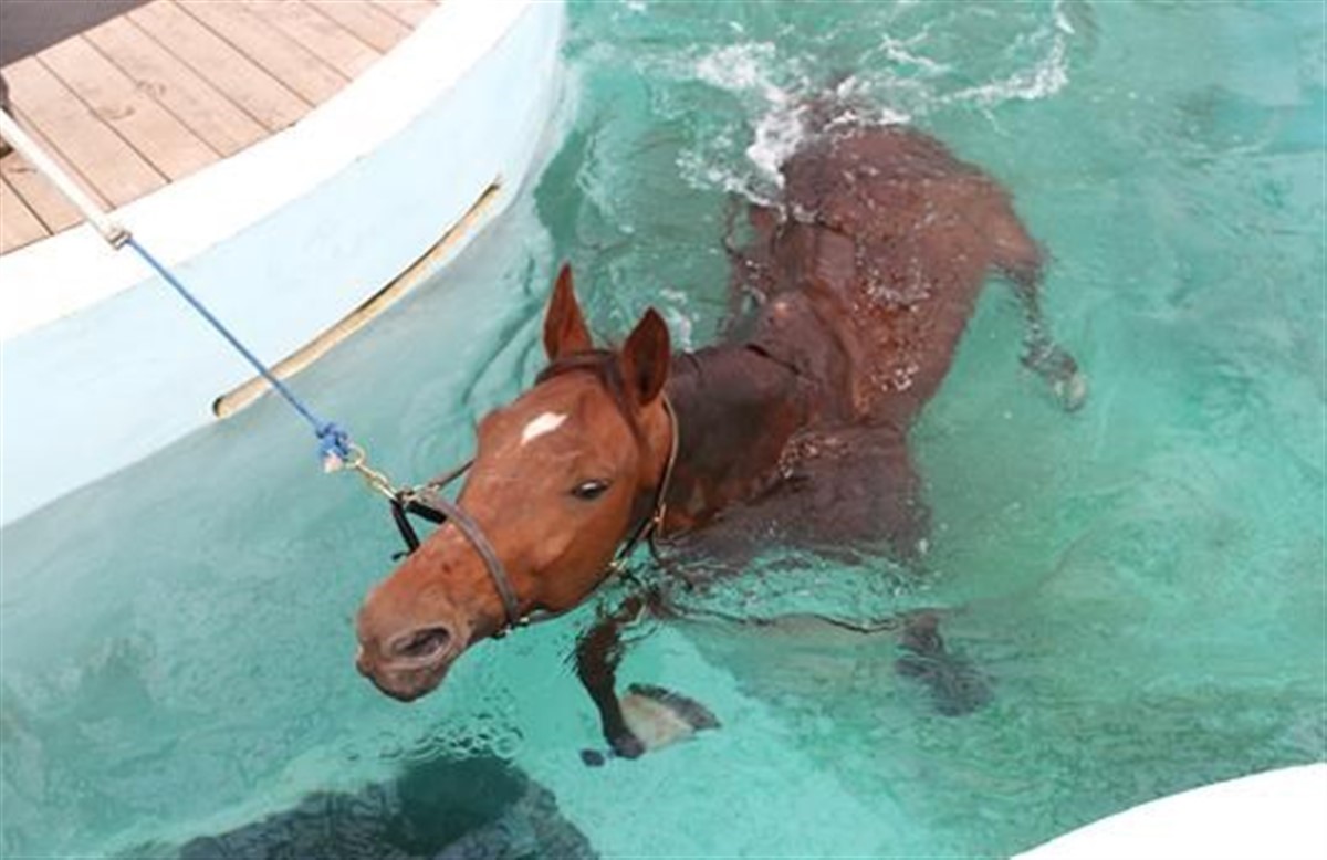 Under 2011 American Association of Equine Practitioners konvention den 18. – 22. November 2011 i USA talte Henry S. Adair III, professor ved Tennessee Universitet, om brugen af hestesvømning i genoptræningen og behandlingen af heste. Ifølge Adair III har både hestesvømning i bassin og skridtmaskiner med vand flere gavnlige fordele, når de bruges af professionelle, fx forbedring af konditionen, øget blodgennemstrømning, god aktivering af hestens muskler, lav risiko for skader mv. Han angav bl.a. følgende scenarier, hvor hestesvømning kan have en gavnlig virkning: - genoptræning efter skade, ledskade eller operation. - alternativ til at gå med hesten. - vedligeholdelse af kondition særlige frakturer. - øge muskeludviklingen. - forbedre symmetrisk gang og udvikling af ryggen. - konditionstræning. Derimod mente han ikke hestesvømning kunne anbefales ved blandt andre følgende scenarier: - akut ledbetændelse. - hudinfektioner. - åbne sår. - haltheder i den øverste del af benet. - rygsmerter. - akut muskelbetændelse. - hjerteproblemer. - luftvejslidelser. Kilde: The Horse