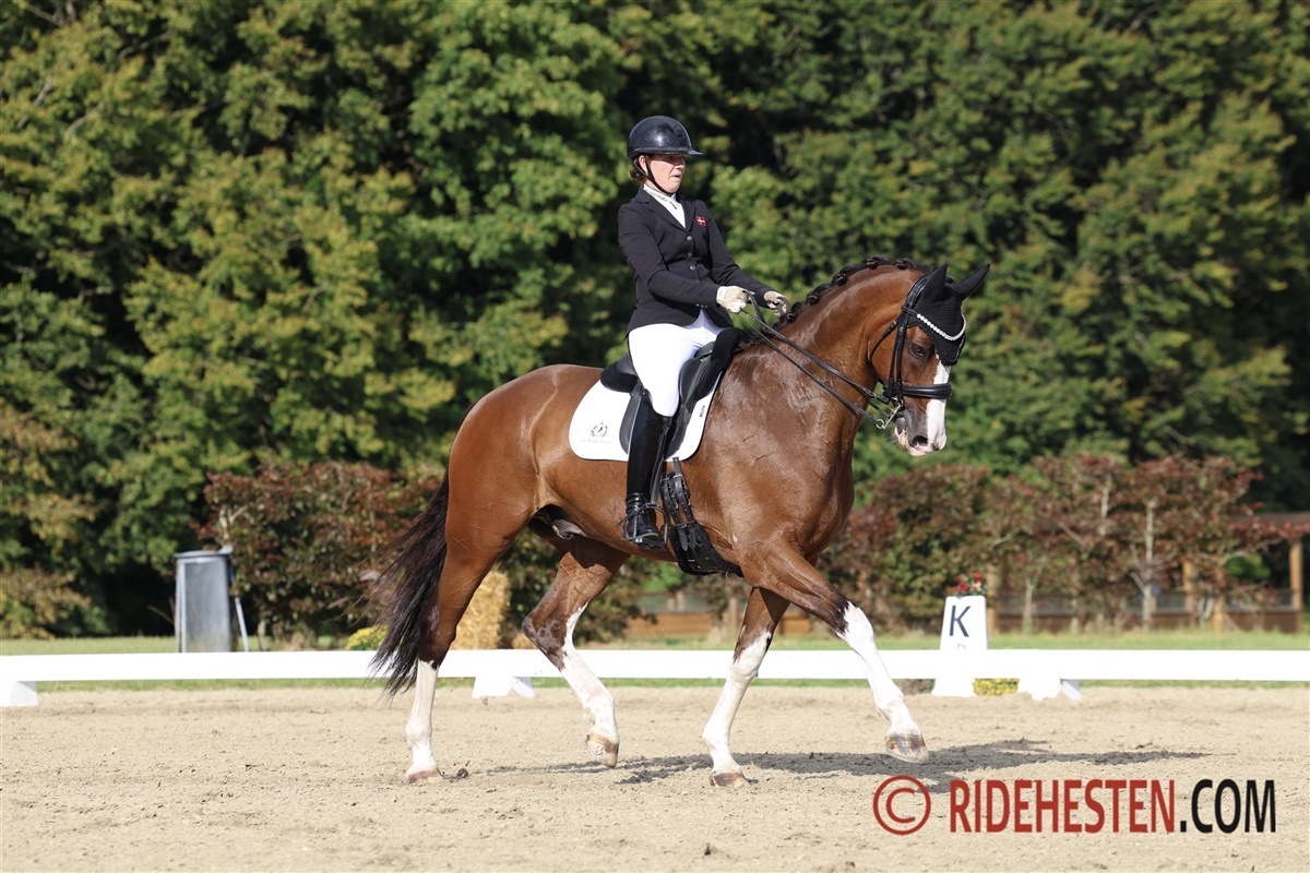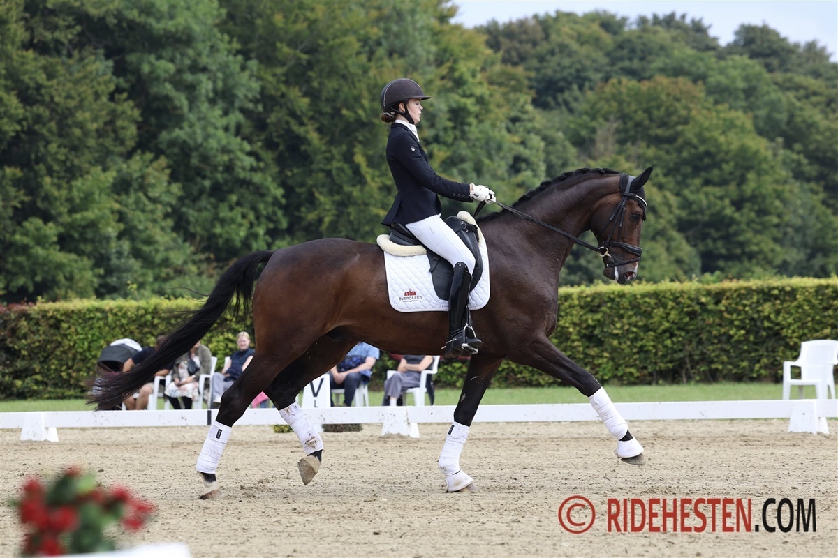 Der var 33 startende i klassen, som blev afgjort søndag middag ved Dansk Varmblod Rideklubs B-stævne på Vilhelmsborg. Den samlede vinder blev 18-årige Emma Skovgaard, som har haft den nu 7-årige Kamar’s Belmont e. Bernay/ Blue Hors Don Olymbrio (opdr. Stald Kamar v/ Morten Kappel Petersen) i to år.