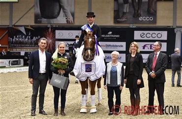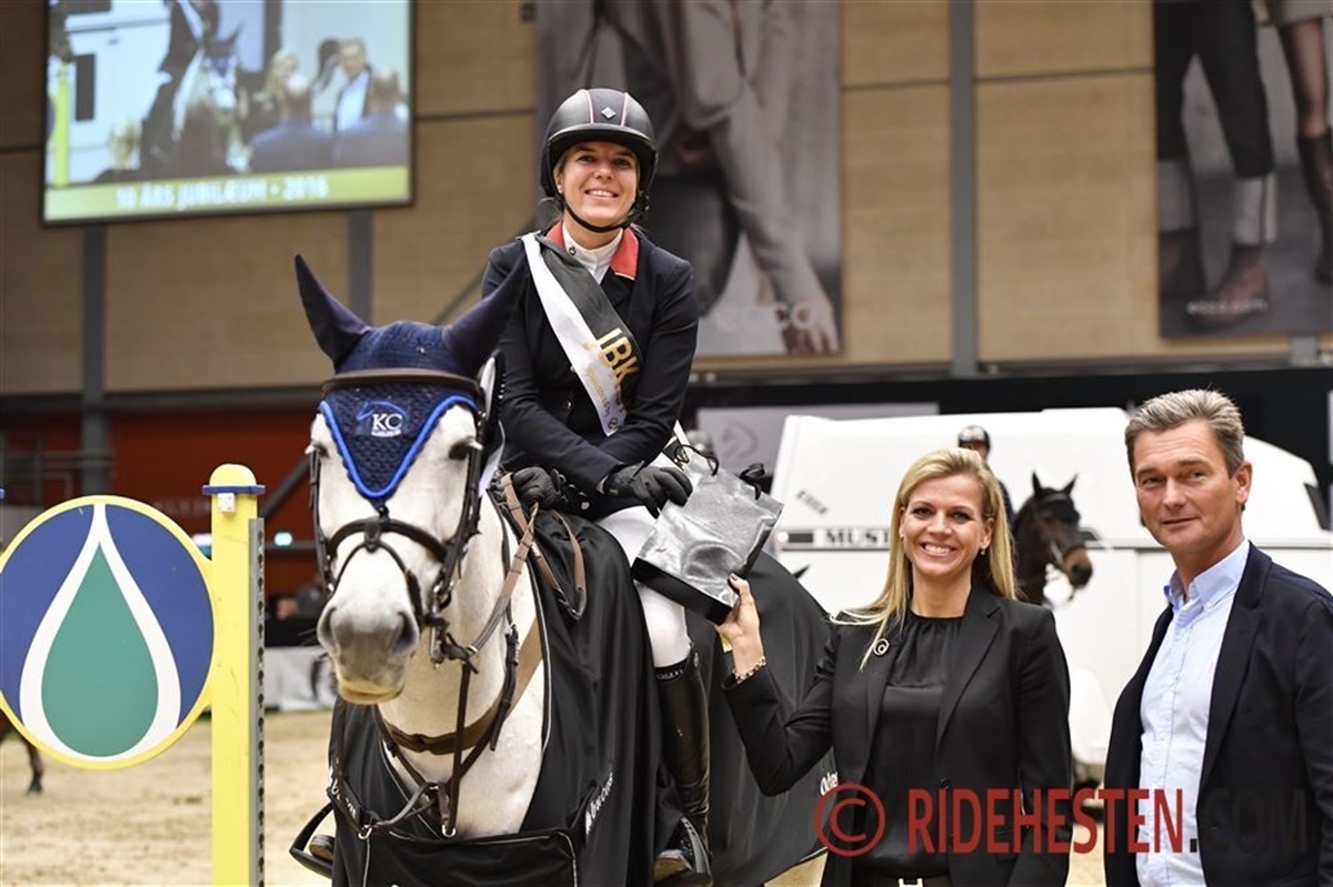 - Alt fungerde for os i dag, sagde hun samtidig med hun glædede sig over de store præmier, som fulgte med sejren og æren - en funklende ny Mustang hestetrailer og hvidgulds ørenringe med brillianter fra smykkedesigner Marianne Helgstrands unikke kollektion "Helgstrand Denmark".