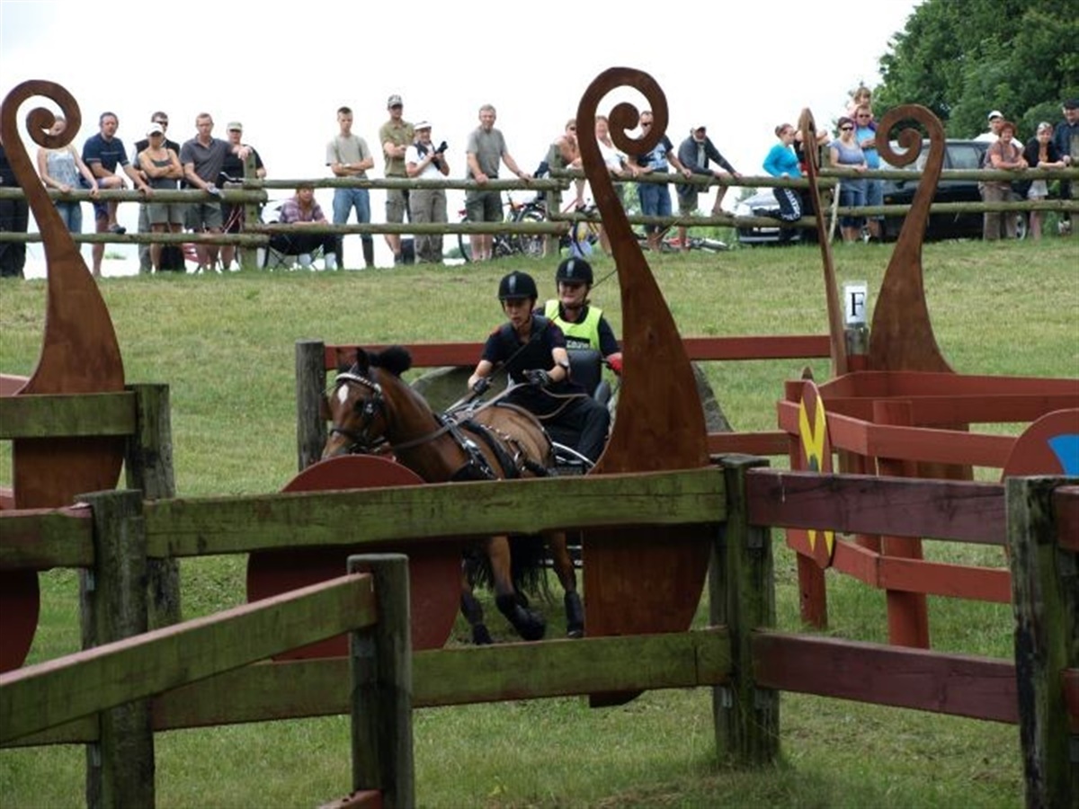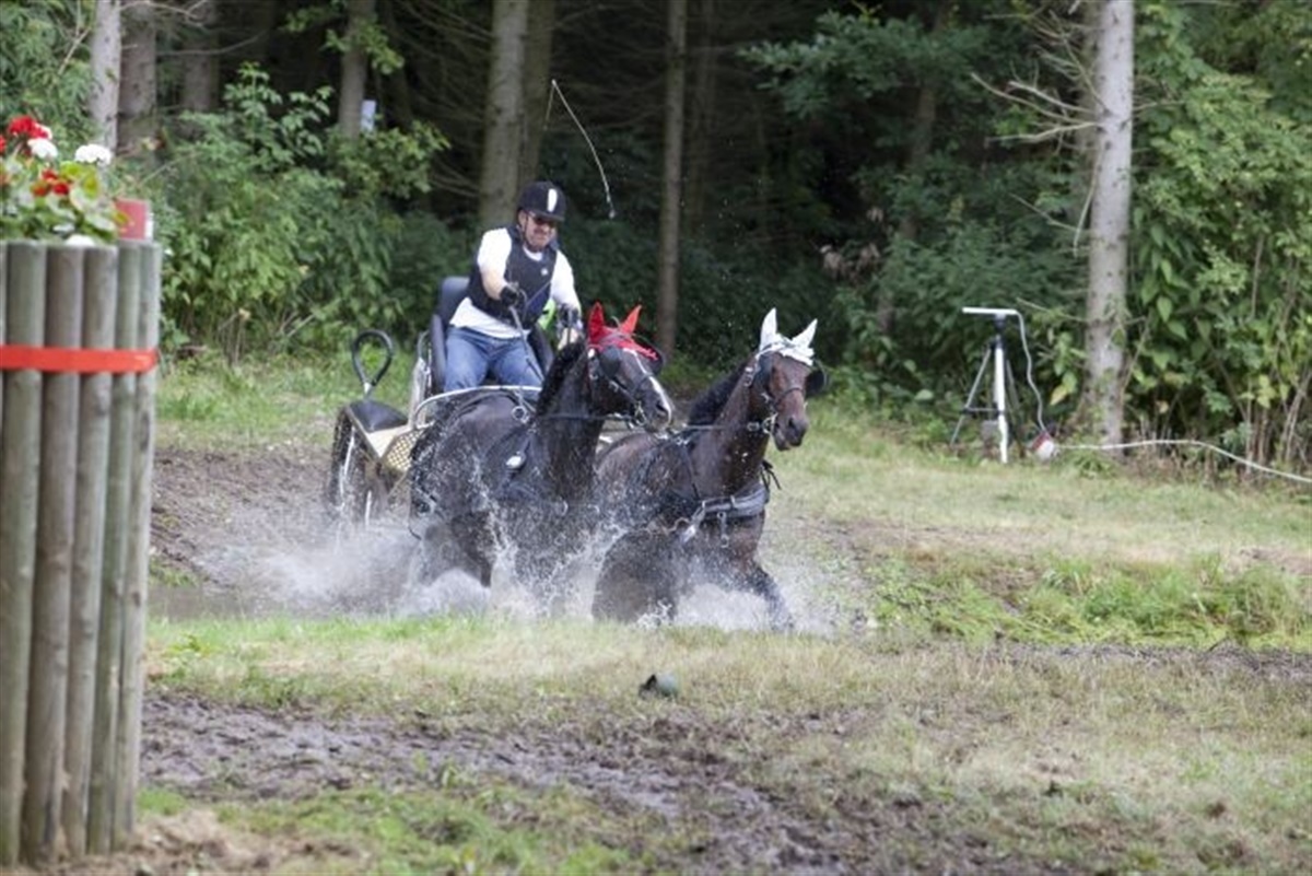 Hvis man tror, det kun er ældre mænd med stråhat, der dyrker køresport, tager man alvorligt fejl. Den ene 4-spands kusk er den kun 19-årige Mathias Birkely Ottendal fra Fyn. Pænt, nydelig og hurtig var han i forhindringerne, og i en enkelt slog han danmarksmesteren gennem de sidste 20 år, Ole Buch Jensen. Det er helt sikkert noget, Mathias vil huske hele sit liv. Det var dog Ole Buch Jensen, der vandt og fører klassen før forhindringskørslen i morgen. I juniorklassen vandt Jannich Sloth med 54,78 strafpoint (sp) foran Mads Kristiansen med 56,88 og Sofie Amalie Kongsted på 3. pladsen med 63,71 sp. Når maratonen lægges til dressuren, som blev kørt torsdag og fredag, fører Mads Kristiansen klassen med kun 0,16 point ned til Sofie Amalie Kongsted, så der er lagt op til en meget spændende forhindringskørsel. Det er ikke altid en fordel at være på hjemmebane, især ikke når man laver om fra gang til gang. Der er lavet nye forhindringer på Dorthealyst, som er publikumsvenlige og sjove for kuskene, det sagde de i hvert fald inden starten på maratonen, desværre betød det også, at Udo Buchwald, der fik en 3. plads i dressuren kørte ind i forhindring 7 efter at have kørt forhindring 4. I mellem forhindringerne tager kuskene farten af hestene eller ponyerne både for, at trækdyrene lige kan få pusten igen og være friske til næste forhindring, men det bruges også til at kusk og groom gennemgår de næste forhindringer. Og i morges havde Udo og hans kone Mette, som er groom, ændret planer for forhindring 7, og da de skulle passere den for at komme til forhindring 5, begyndte de helt naturligt at tale om den, så snart de så den, og det man tænker på, gør man så, selv om man har gået ruten mange gange og udmærket godt ved, hvordan det er ved dette stævne. Og først da de så kommer op og skal køre mod forhindring 5, opdager de fadæsen, og så var der kun en vej og det var hjem i stalden, fejlrute er lig med diskvalificeret. Som Udo sagde bagefter: ”Vi plejer aldrig at lave fejl”. Men alle ved, at man i livet har en hvis fejlprocent, bare ærgerligt, at det lige skulle være til et DM. Vinder af klassen 1-spand hest blev Henrik Høper, som ventet med 69,04 sp. efterfulgt af Ane Wieder med 73,38 sp. 3. Tina Nielsen med 74,26 sp. Samlet før forhindringskørslen klemmer Anders Hansen sig ind på en andenplads før de 2 piger fra Amager. Klassen 2-spand hest vandt Frank Rasmussen med 75,73 sp. foran Peter Chr. Jespersen med 80,94. Nr. 3. blev Kurt Klindt med 81,31 sp. Hans Henrik Nielsen blev nr. 4 med 90,26 han havde det uheld at støde på en stolpe i forhindring 3 og en skagle røg af, den måtte groomen ned at sætte på, hvilket koster 10 strafpoint og en del sekunder, i de øvrige syv forhindringer blev enten hurtigst eller næsthurtigst i forhindring 3 nr. 12 så det koster at lave fejl. I det samlede resultat fører Kurt Klindt med 132,13 sp. 2. Peter Chr. Jespersen med 133,16 sp 3. Frank Madsen med 138,58 sp. Vinder af dressuren Finn Qvist blev desværre elimineret i maratonen pga. hjælp ude fra. I klassen 1-spand pony blev vinderen af maratonen Kristina Klindt med 75,02 sp. med vinderen af dressuren Peter Koux lige efter med 78,51 sp. 3. blev Arnild Arp-Hansen med 82,68 sp. I det samlede resultat fører Peter Koux foran Kristina med 0,19 strafpoint, det bliver en spændende forhindringskørsel i morgen. Desværre var der enkelt kuske, der glemte en pligtport i slutningen af maratonen, og det bliver man diskvalificeret af. 2-spand pony blev vundet af Niels Schelde-Petersen med 70,80. Nr. 2 Lars Dau, vinderen af dressuren, med 71,57 sp, og Henrik Sloth blev nr. 3 med 73,77 sp. Samlet fører Lars Dau med 117,65 med Henrik Sloth på 2. pladsen med 124,65. Der er lige plads til, hvis Henrik kører fejlfrit i morgen, og det plejer han at gøre, at han kan tage 2 bolde og ikke andet, men han plejer også at køre fejlfri, men alt kan jo ske til et DM, hvor æren i den grad er på spil. For første gang kører kuskene nemlig et officielt danmarksmesterskab i klasserne 1- og 2-spand heste og ponyer, de øvrige 16 gange, hvor Dansk Køre Forbund har afholdt DM, har det været forbundsmesterskaber, fordi betingelserne for at blive godkendt af Danmarks Idræts Forbund ikke har været til stede. Det er de så nu for de fire klasser. 4-spand hest, de helt små ponyer under 138 cm og juniorerne kører stadig om et forbundsmesterskab, fordi de ikke opfylder DIF’s betingelser for afholdelse af danmarksmesterskaber. I klassen de små ponyer vandt Jakob Andersen med 85,16 sp. 2. Katja Lamborg med 85,44 sp og 3. Anna Rasmussen med de helt små shetlandsponyer med 93,43 sp. Samlet fører Katja Lamborg klassen foran Jakob Andersen. DM afvikles på Dorthealyst, Knabstrup Møllebakke 6, Knabstrup, 4440 Mørkøv, og i morgen søndag køres sidste og 3. disciplin af mesterskabet, forhindringskørsel. Første start er kl. 10.00.