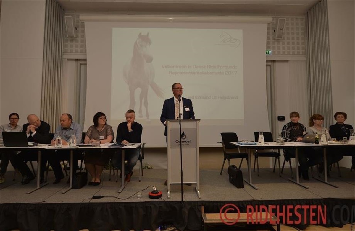 Dansk Ride Forbunds formand Ulf Helgstrand indledte: Mærk historien – det er altså stort! Det er næsten unikt. Indenfor de 64 idrætsgrene under DIF er vi nr. 14 der fejrer 100 års jubilæum, og vi har være engageret i det internationale rideforbund FEI, da det blev dannet i 1923. Han udtrykte også glæde over, at loven om Hold af Hest er blevet revideret, og så fik de deltagende klubber en lille opsang: der endnu ikke er mange klubber, som har givet tilsagn om at hjælpe med til at promovere ridesporten i lokalområdet ved arrangementet "Åben Rideklub" den 26. august.