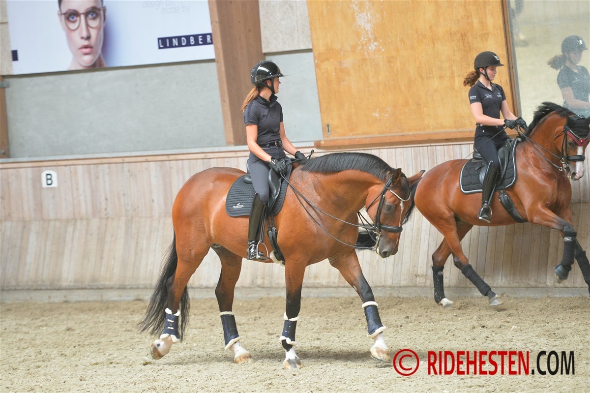 Ikke alle heste bryder sig om, at andre heste kommer for tæt på dem. Unge heste og urutinerede ryttere kan have svært ved at læse, hvor de andre ekvipager i ridehuset er på vej hen eller vil. Sørg derfor for at holde god afstand, både for deres såvel som for din egen skyld.