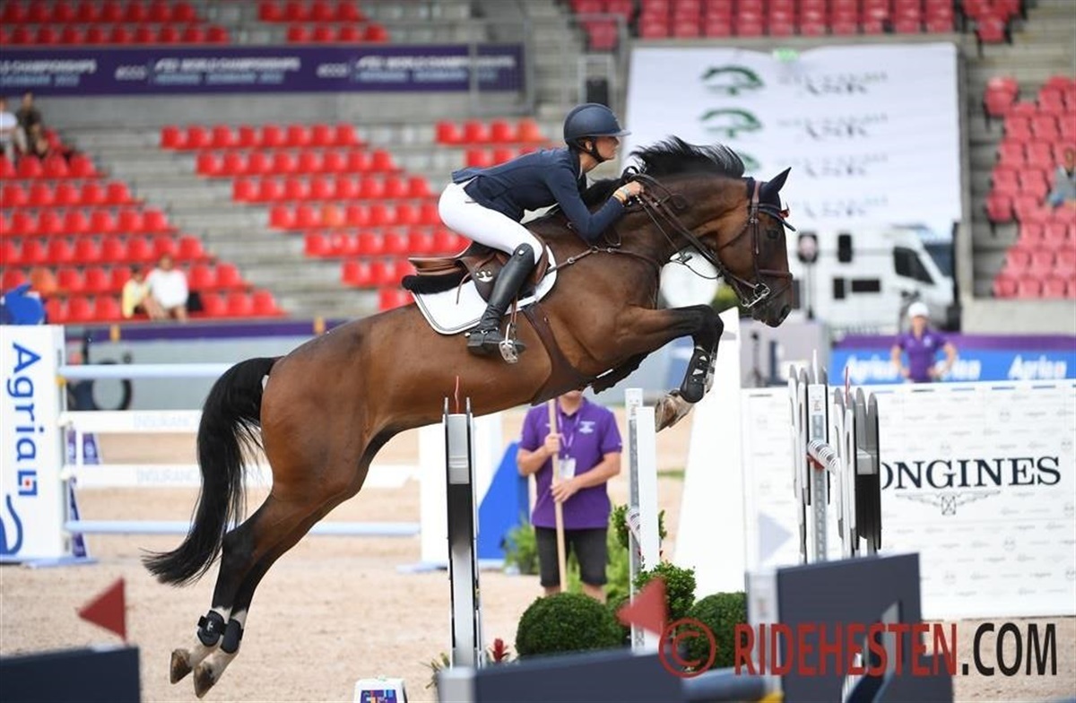 Senere i klassen blev det 21-årige Caroline Rehoff Pedersens tur, og sammen med Chaccieny e. Chacco-Blue/ Caretano Z kom hun igennem sin første World Cup-klasse nogensinde med et enkelt nedslag og én tidsfejl.