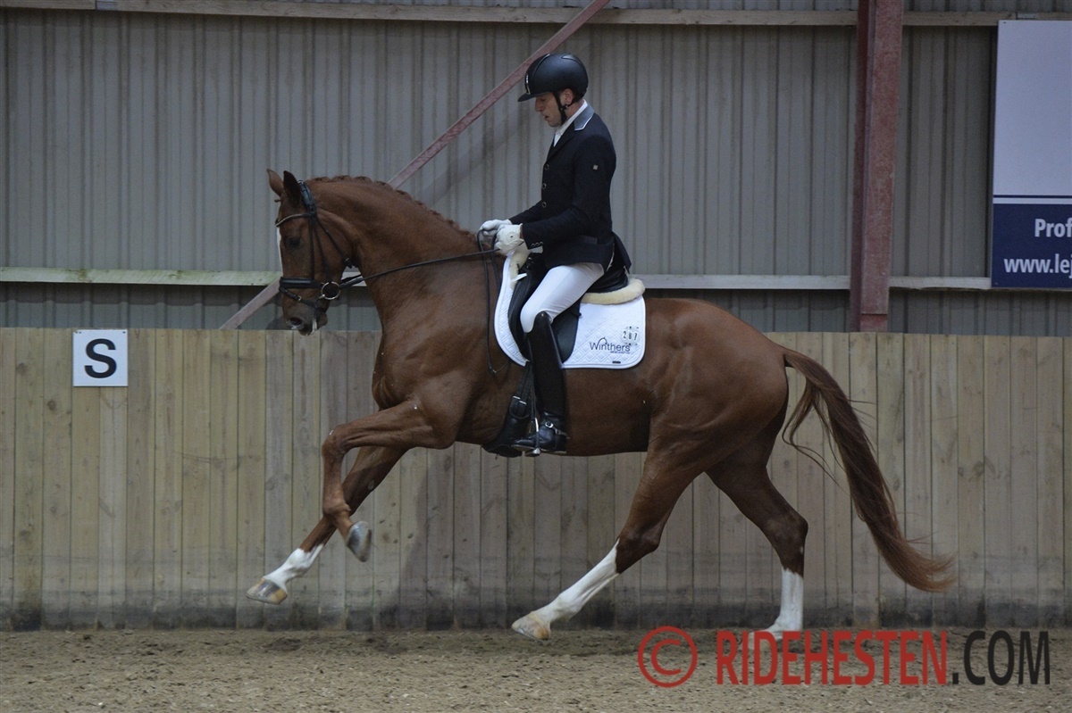 De 48 starter i dressuren blev bedømt af Bjarne Nielsen og Birthe Lyder Nielsen. Det blev Okslunds Zackadon e. Blue Hors Zack/Blue Hors Don Romantic (opdr. Evamaija Thea Kirstine Schmidt) med Jan Møller Christensen i sadlen, der hev sejren hjem med tre 9-taller og en samlet score på 880.000. Silje Bakken satte sig på både anden og tredjepladsen, på andenpladsen var det med hesten Rammstein-WI e. Blue Hors Romanov/ Münchhausen (opdr. Erik Iversen), der samlet opnåede 850.000. Samme score opnåede Dena’s Blachman, men idet Rammstein-WI opnåede 9 i ridelighed og dermed 0,5 mere end Dena’s Blachman med 8,5, gik andenpladsen til Rammstein-WI. Dermed blev Dena’s Blachman e. Bøgegårdens Boney M/ Crelido (opdr. Nadia Zahoual og Dennis Søgaard) placeret som nr. 3, med karakteren 9 i både skridt og galop.
