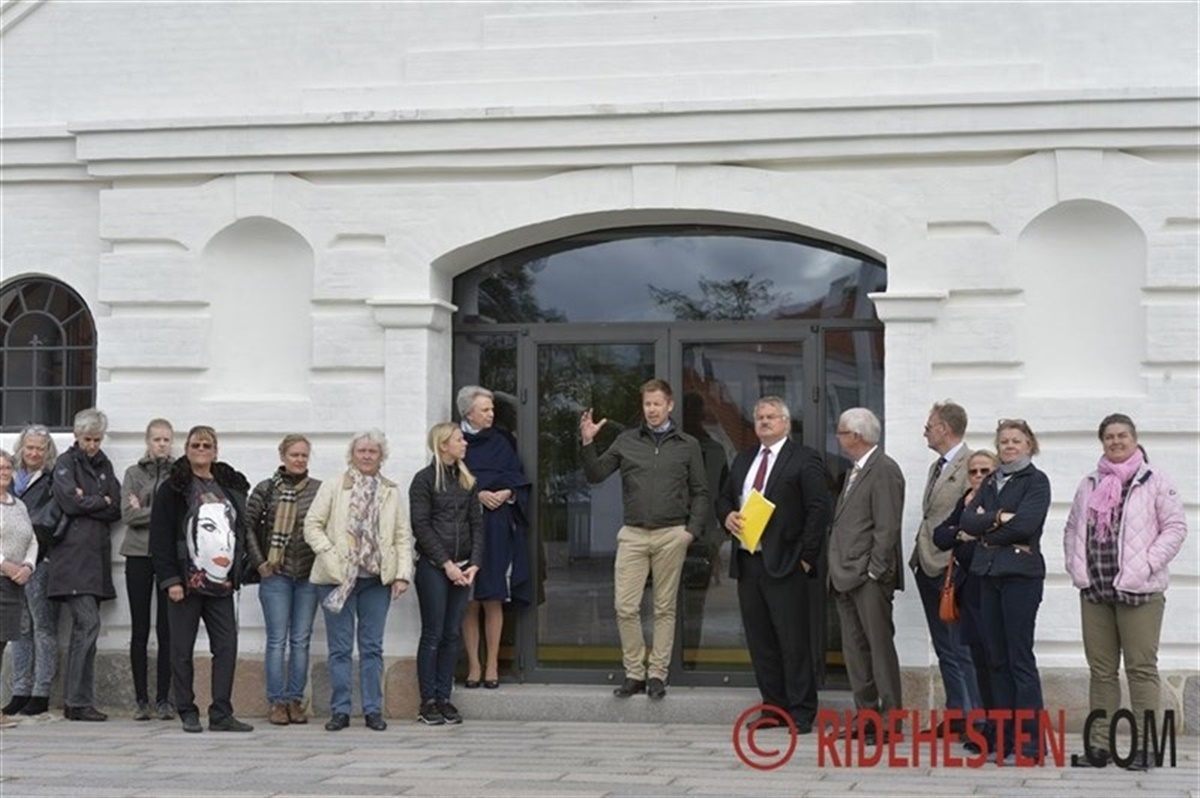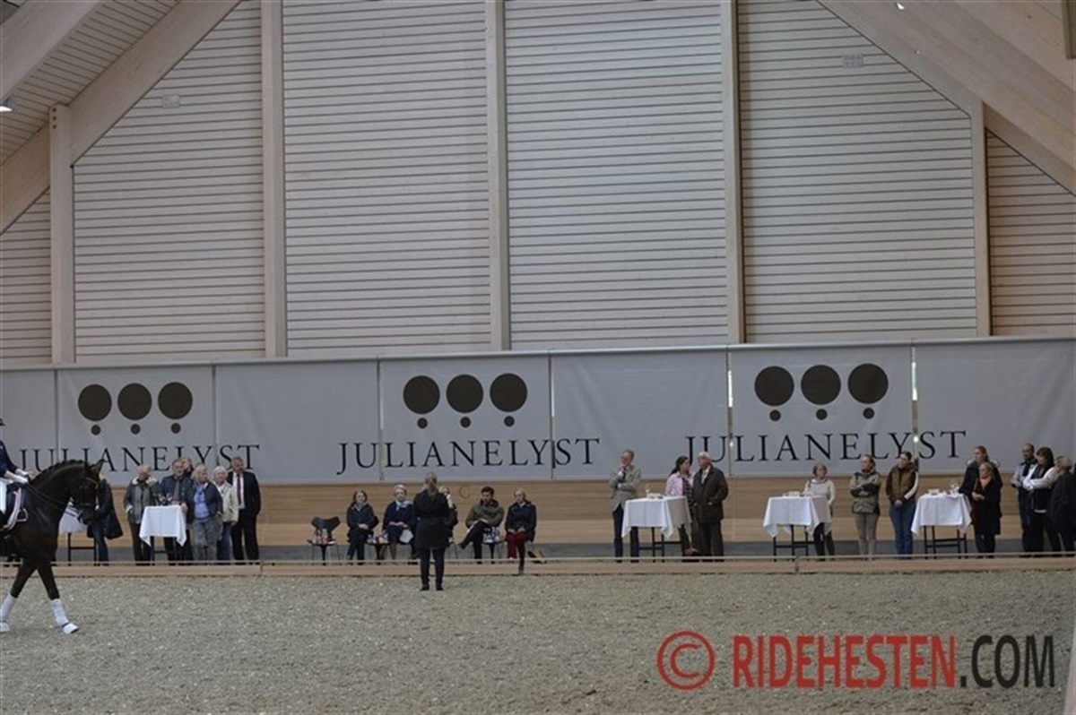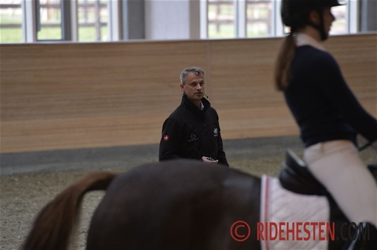 HC kom også på et ekstra arbejde, idet kan talte om træningsmetoder og korrekt dressur for forsamlingen, og det fik vi så demonstreret i praksis inde i det smukke ridehus. Landstræner for junior- og ungrytterne berider Ulrik Sørensen underviste to ryttere på hhv. 20 og 21 år Sarah Faurholm Christensen og Christina Rasmussen og på den vis sluttede nogle dejlige timer på Julianelyst Gods på bedste vis.