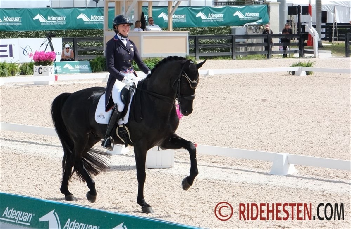 I samme klasse havde mange set frem til den amerikanske rytter Kasey Perry-Glass på 12-årige Heartbeat WP e. Charmeur/ Showtime. Heartbeat er spået til at være hendes nye tophest, men selvom parret havde en flot tur kostede den sidste piaffe/passage tur op ad midterlinjen dyrt, idet de aldrig fandt takten. De sluttede med 66,609%. Kasey Perry-Glass var i 2016 på det bronzevindende hold ved OL i Rio på den danske hest Gørklintgårds Dublet (opdr. Jørgen Ravn).