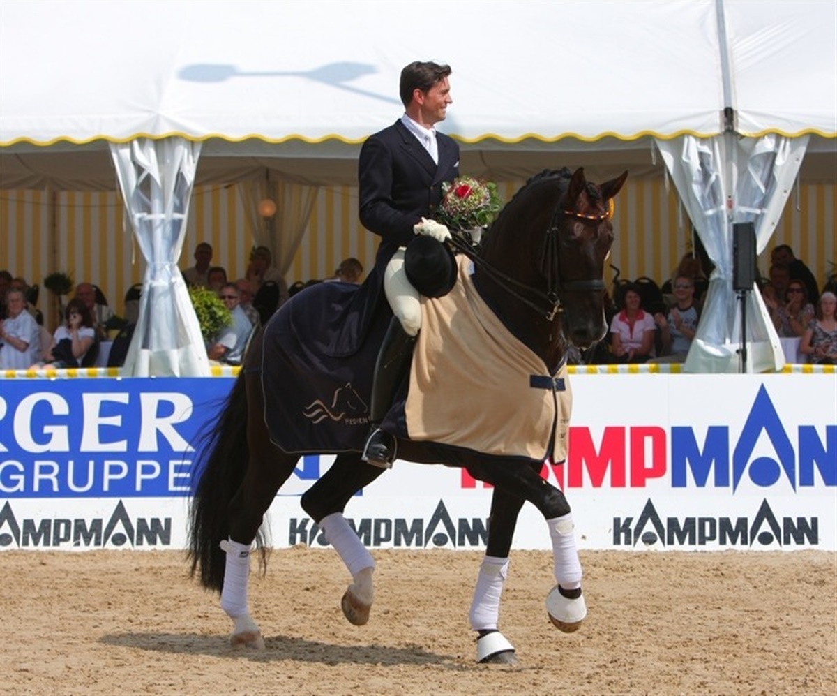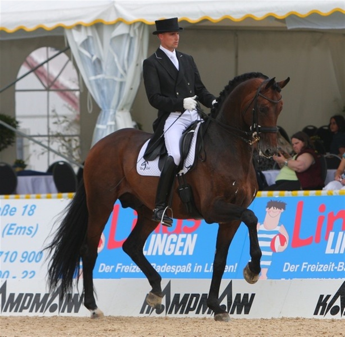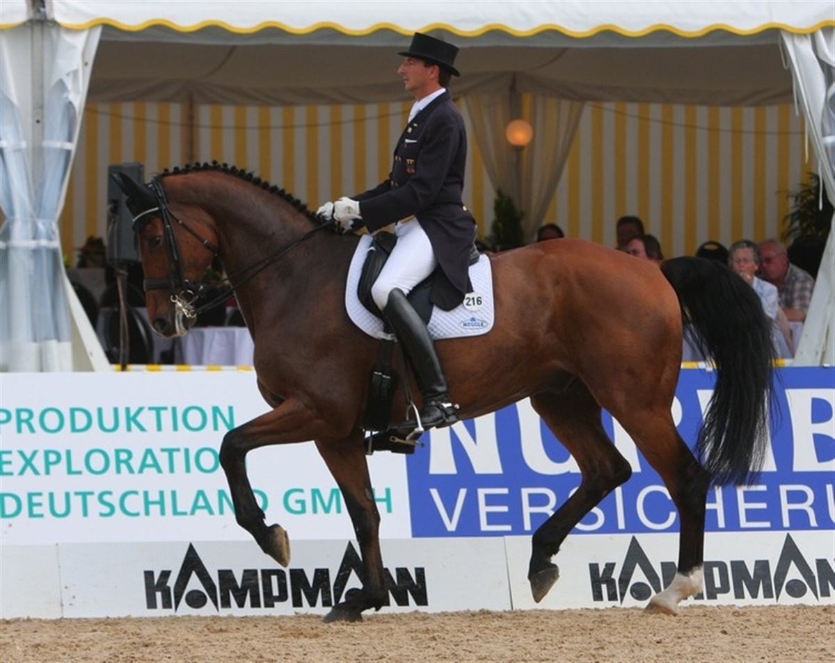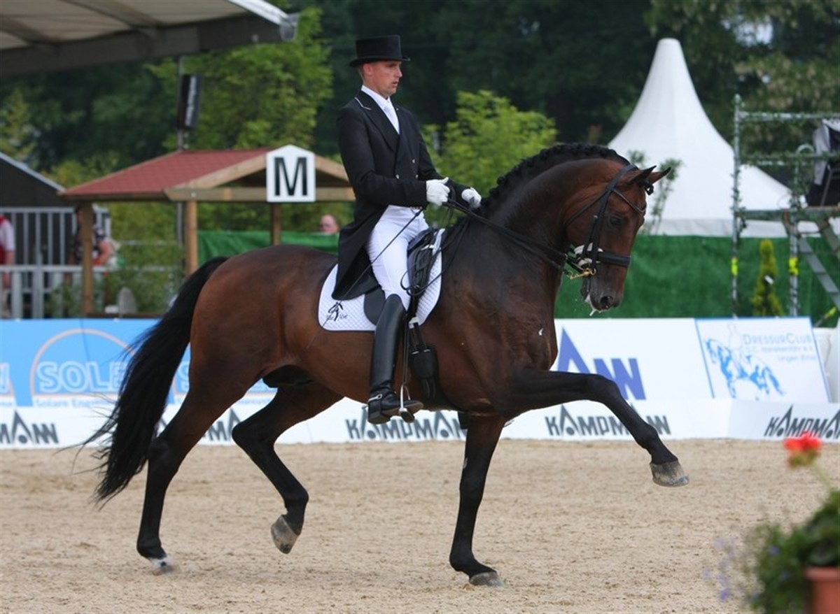 Andreas Helgstrand kvalificerede i fredags Blue Hors Romanov ved at placere sig som nr. 4 i den indlende Grand Prix. I søndagens finale opnåede ekvipagen en femteplads efter et flot ridt, hvor de dog blev strengt dømt for, at Romanov blev noget anspændt i skridten. Ikke destro mindre en lovende ekvipage, der også fik rosende ord med på vejen af den kommenterende dommer, der ikke undlod at understrege, at hesten har en formidabel udstråling på en dressurbane og et meget stort potentiale at arbejde videre med. Klassen blev vundet Christoph Koschel med den 9-årige finske varmblodsvallak Donnperignon e. Donnerhall og havde Gina Capellmann-Lütkemeier på andenpladsen med oldenburgerhoppen Baldessrini W e. Breitling W.