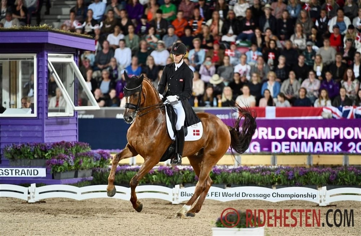 Også Marshall-Bell e. Blue Hors Don Romantic/ Michellino (opdr. Tina Christoffersen og NicolaiJepsen) har i aften gået sit bedst og mest afspændte ridt her til VM. En enkelt uheldig overgang men ellers en virkelig flot kür af Daniel Bachmann Andersen, der nu har redet sin sidste klasse på Marshall. De opnåede 83,464 %.