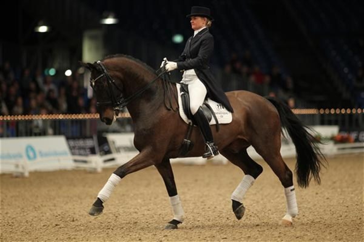 Det var kun hestens åndedrag og hovslag man kunne høre i den store opvisningshal i hal M mens den hollandske verdensmester Edward Gal og avlshingsten Blue Hors Romanov piafferede og passagerede til 8-taller. Der blev redet ud i øgningerne, og det var kun fotografernes klik-klik som akkompagnerede hingstens taktfaste hovslag. De to klæder hinanden og deres samarbejde ser ud til at udvikles fra gang til gang de optræder sammen for publikum. Jublen skyllede ned over parret da Gal hilste af og langsomt skridtede ud af hallen med hatten i hånden til 73,90% Anette Ejlersgaard og Gørklintgårds Dublet e. Diamond Hit havde den utaknemmelige opgave at ride på banen efter Gal, Den opgave løste de dog særdeles godt. I deres Grand Prix debut fik Anette vist, at Dublet magter alle de svære øvelser og blot skal opnå større sikkerhed og styrke for at kunne vise hele sit ikke ubetydelige potentiale. Der var også stille i hallen under deres ridt, og da Anette hilste af skyllede jublen ned over parret. 66,52% gav dem en anden plads efter verdensmesteren i deres debut.Med et godt og sikkert program red Helene Melsen og Akeem sig ind på tredjepladsen med knap 65%