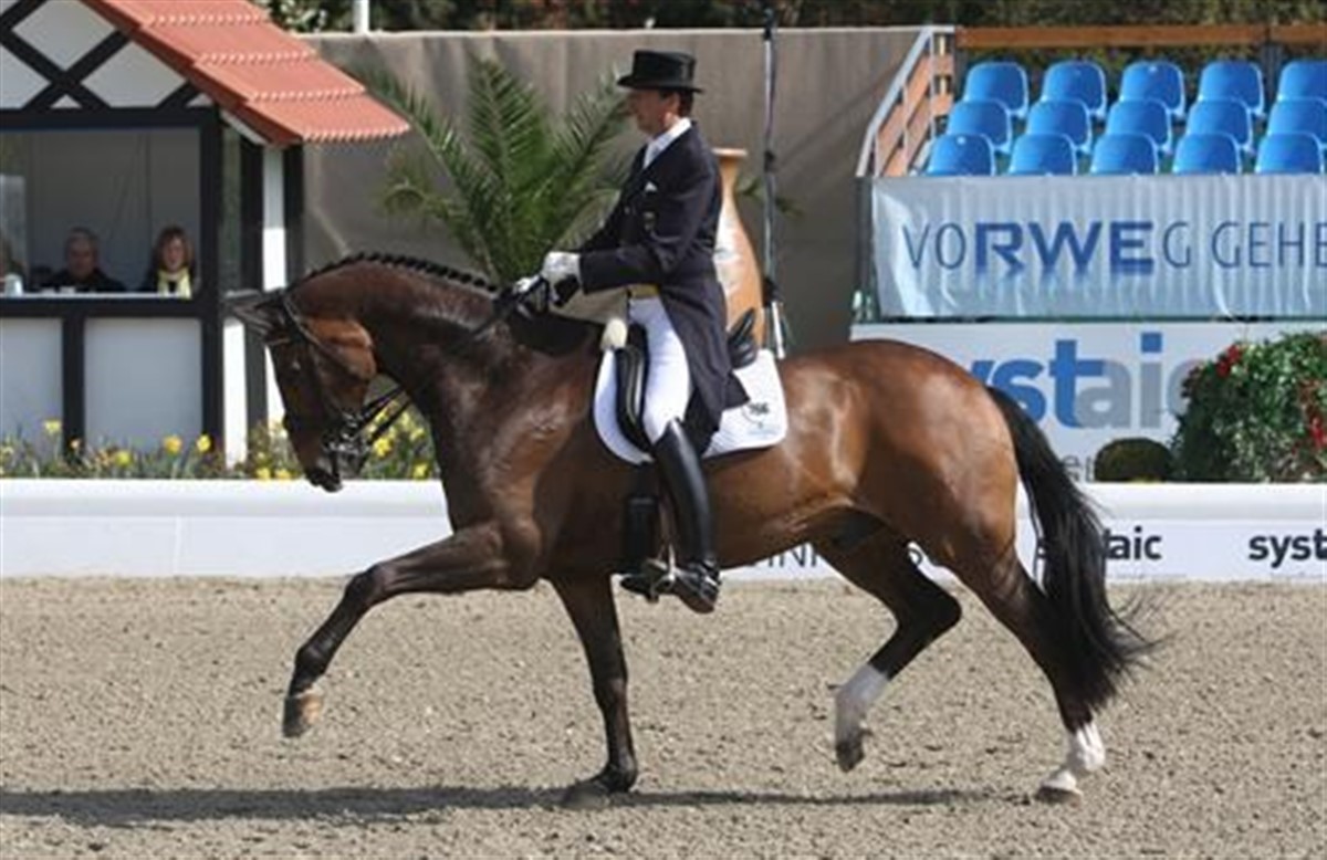 Det firestjernede CDI-stævne i Salzburg, Østrig, er godt i gang, blandt andet med deltagelse af danske Lone Jørgensen og FBW De Vito e. De Niro/Disco-Stern, som indtil videre blandt andet har imponeret med en flot andenplads i Grand Prix. I dagens Grand Prix Special red ekvipagen sig end på en delt femteplads med 69,111% - under én procent fra andenpladsen. Klassen blev suverænt vundet af tyske Dieter Laugks og Meggle's Weltall VA e. Weltmeyer/Picard med hele 76,667% - ekvipagen vandt også Grand Prix'en tidligere under stævnet. Der var endnu et dansk islæt blandt de øverste placeringer i klassen i form af DV-hesten Smeyers Molberg (tidligere Atterupgaards Molberg) e. Michellino/Rambo (opdr. Atterupgaard), som med schweiziske Marcela Krinke-Susmelj i sadlen red sig ind på en tredjeplads med 69,756%. Se flere resultater via linket til højre.