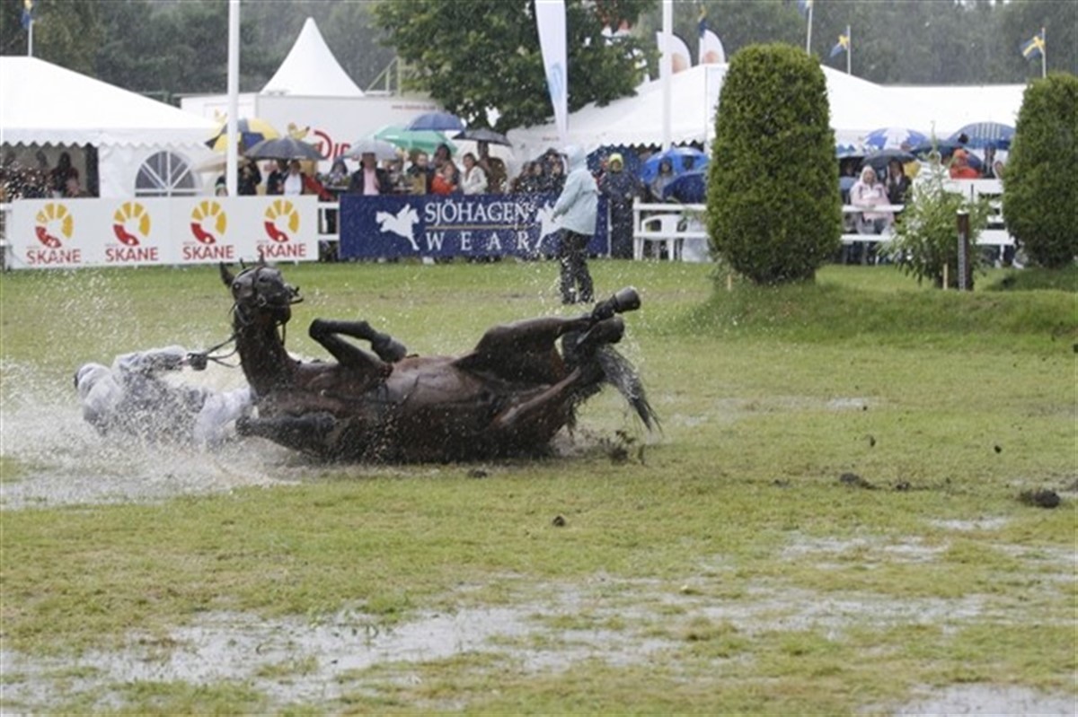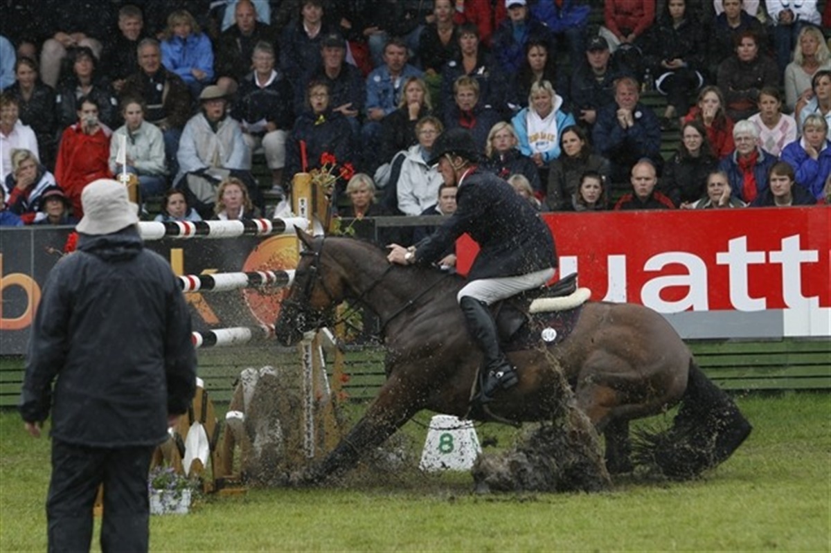 Den tyske rytter Thomas Voss og Leonardo B styrtede voldsomt i Grand Prix-klassen i Falsterbo. Flere af hans kolleger valgte ikke at komme til start efter dette, eller trække sig efter fejl på banen. Da vi var halvvejs gennem klassen var bunden nærmest bundløs, glat og med blank vand flere steder. Stævneledelsen sammenkaldte holdledere, banebyggere og officials og dyrlæger og besluttede at aflyse klassen. Rolf-Göran Bengtsson blev udråbt som vinder efter en fejlfri runde i hurtig tid på Quintero La Silla sammen med Leon Thijsen og Olaf - de fik hver 125.000 kr. 20 ryttere kom på banen inden klassen blev afbrudt iblandt dem to danske. Thomas Velin/Godsend du Reverdy og Linnea Ericsson/Cordivo fik 8 fejl så de delte tredjepladsen med Ramzy al Duhami og hver af de tre ryttere fik 40 000 kroner. Det betød også at de 600.000 kr. i præmiepenge blev fordelt med hovedparten til de fem placerede ryttere og 6.000 kr. til alle de ryttere, som var kvalificeret til deltagelse.