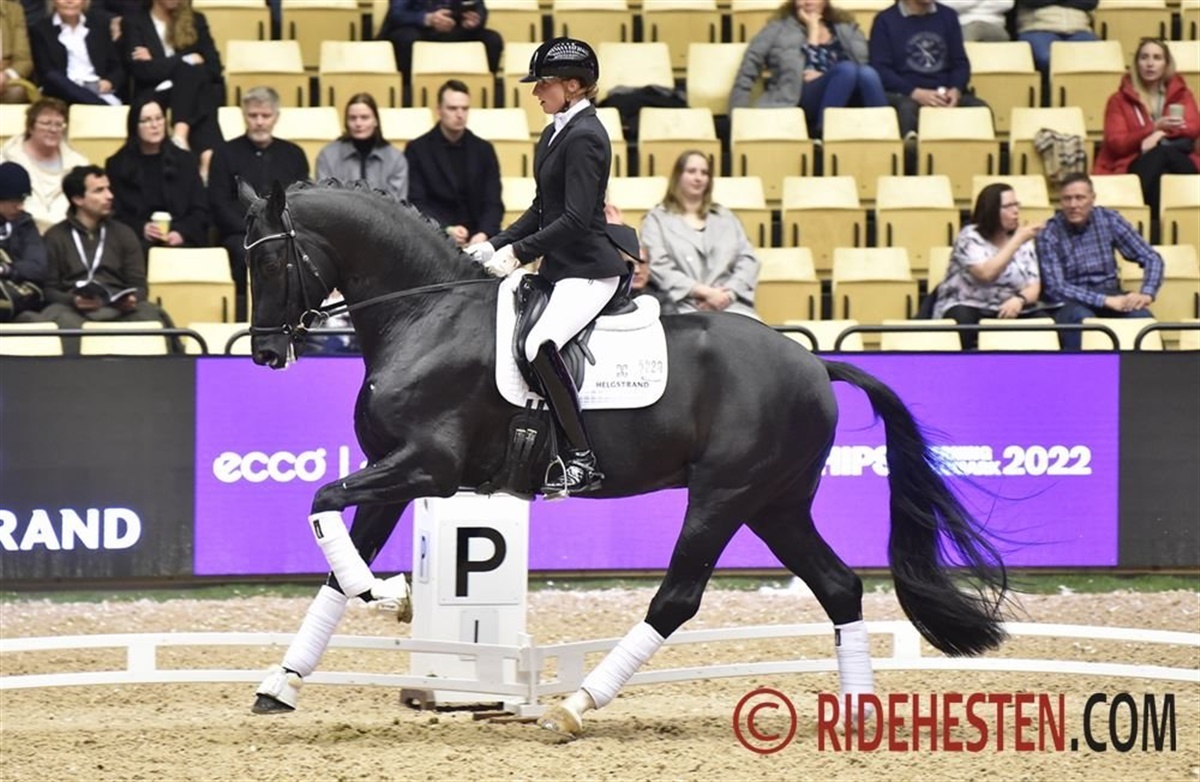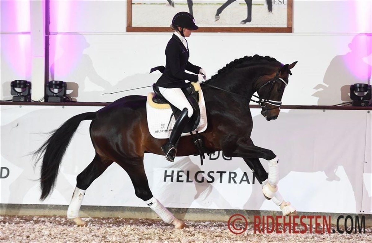 Helgstrands 5-årige hingst Total McLaren e. Totilas/ De Niro blev under Leonie Richter nr. 3 i finalen med en samlet score på 8,8 i finalen, hvor dommerne belønnede den med 9 for trav, galop såvel som eftergivenhed.