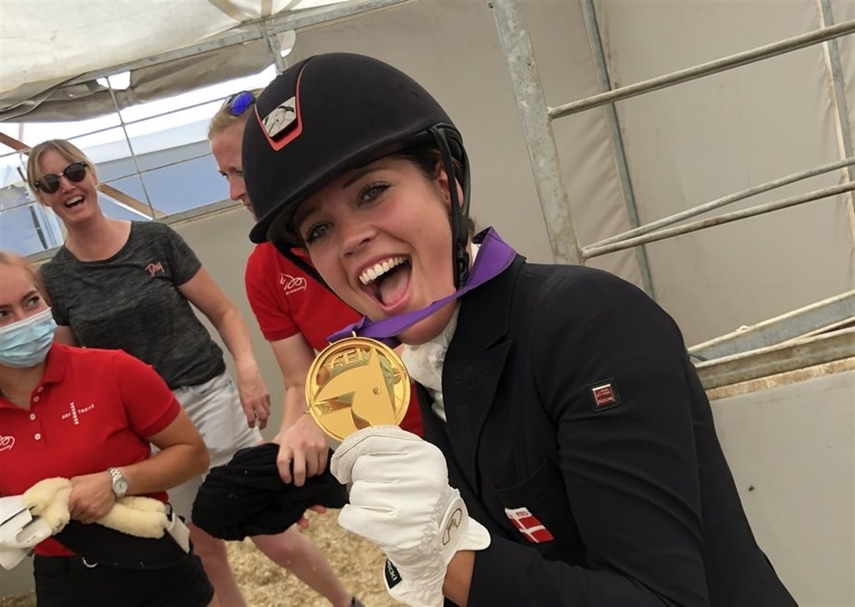 Dannebrog stryger i dag helt til tops ved EM i Ungarn for U25-ryttere, hvor Anne-Mette Strandby Hansen og Foco Loco W leverede en fantastisk smuk kür til 79.025 procent, og dermed sikrede sig GULD i finalen!