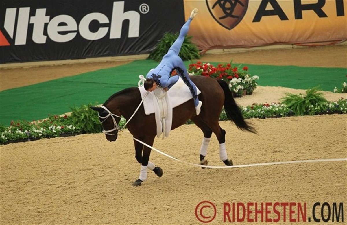 Mesterskaberne blev afviklet ved det store mesterskabsstævne hos Voltigeringsklubben Thommysminde, hvor de obligatoriske og frie programmer blev afviklet lørdag, mens søndag stod på de tekniske og frie programmer. Resultat: DM i voltigering, damer (indv.) Voltigør/Longefører/Hest/Point 1) Rikke Laumann (VKT)/Lasse Kristensen/Ghost/8,428 2) Sheena Bendixen (VKT)/Lasse Kristensen/Ghost/7,806 3) Marianne Tovborg (VKT)/Lasse Kristensen/Anyway 54/7,715 Resultat: DRF-mesterskab i voltigering, grupper Klub/Longefører/Hest/Point 1) Møllebakkens Rideklub (MBRK1)/Lise-Lotte Bjarndahl/Fabiano /7,428 2) Voltigeklubben Thommysminde (VKT1)/Betina Nielsen/Jarl/7,171 3) Voltigeklubben Thommysminde (VKT2)/Rikke Heegaard/Donau/6,518 Kilde: Dansk Ride Forbund