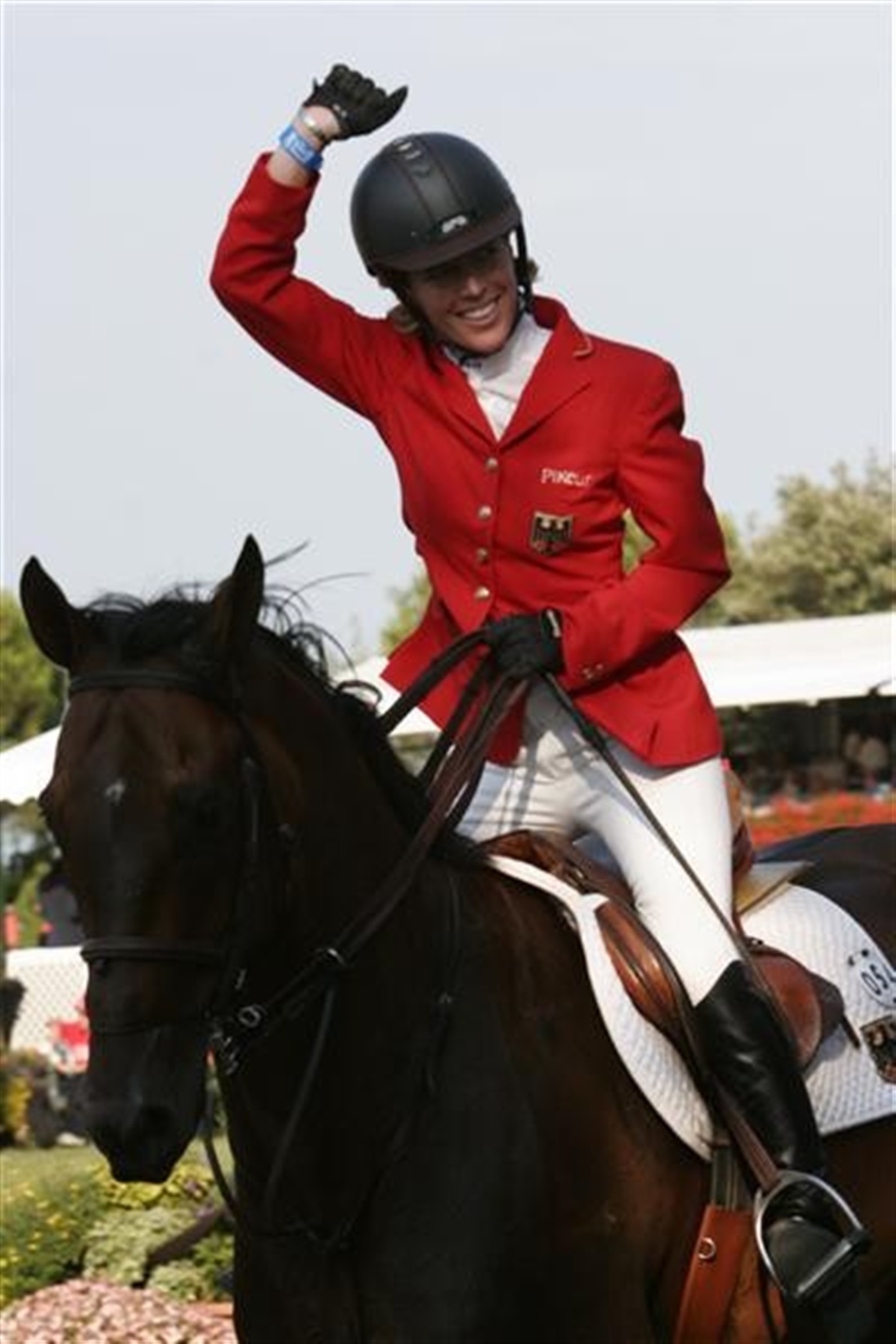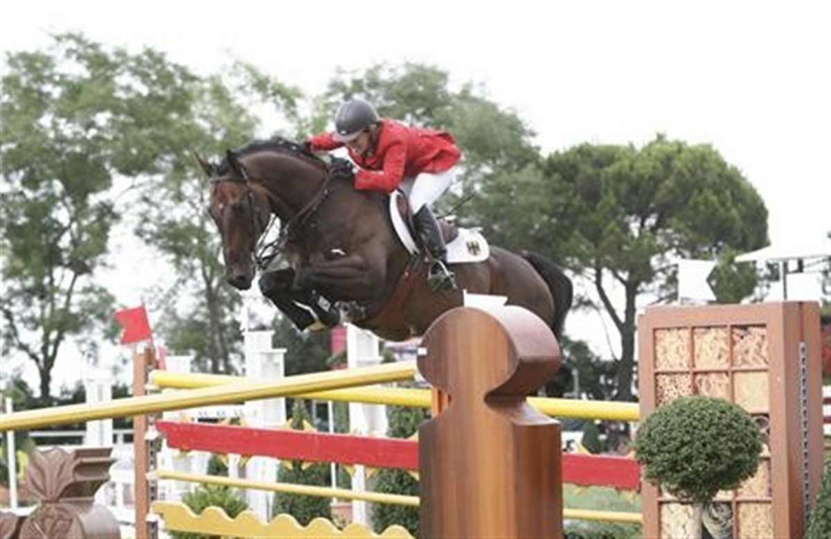 5 uger efter fødslen af sit første barn, Briana Victoria, meddelte den tyske ex-amerikanske springrytter, Meredith Michæls-Beerbaum , at hun trak sig fra deltagelse i Rolex World Cup finalen i springning i Geneve. Det var for tidligt for hende at konkurrere på så højt niveau. Meredith har også udtalt, at datteren helt naturligt har førsteprioritet i hendes liv, og at det måtte vise sig, hvordan den nye titel som mor kunne gå hånd i hånd med springkarrieren. Man må sige, at Meredith har fundet den helt rigtige løsning. I weekenden var hun tilbage i storform blot et halvt år efter fødslen, og mon ikke dette lover godt forud fra WEG i Kentucky? I søndagens finalerunde i mændenes tyske springmesterskab satte Meredith Michæls-Beerbaum mændene til vægs på Checkmate. Ekvipagen opnåede 4 fejl, og dette sikrede det succesfulde makkerpar endnu en tysk guldmedalje i herrernes springmesterskab – en kunst, Meredith også præsterede tilbage i 2008. Måske kan sejren være anledning til at overveje aktualiteten i stadig at opretholde et springmesterskab for både herrer og kvinder i Tyskland? I hvert fald kunne mændene ikke følge med den tyske ”Mutti”. Nærmest kom sølvmedaljevinder Christian Ahlmann med Lorenzo med 4,25 fejl. Bronze tog Alois Pollmann-Schweckhorst med 4,75 fejl.