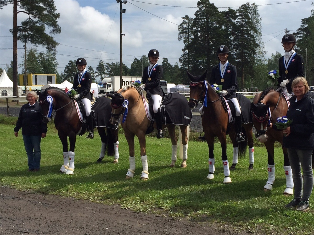 Flotte resultater betegner meget godt starten på NM i Ypäjän. I dag sikrede de to danske ponylandshold sig guldet i holdkonkurrencerne. Dermed landede NM guldet for hold på danske hænder, hvilket er helt fantastisk!