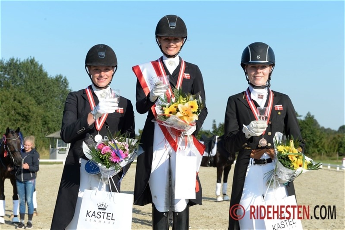 I ridning kan alt ske og det skete også i dag. De to foregående dag har det ligesom juniorenes resultater været meget ens, da både Alexandra, Sille og Maja er blevet placeret i samme rækkefølge de to foregående dage. Küren vendte lidt op og ned det hele på selve dagen, men den samlede stilling ændrede sig ikke. Forrige års guldvinder for junior, Alexandra Sørensen og Camiro Mandø e. Blue Hors Future Cup/Alfarvad Champi On (Faslight), kunne i år modtage endnu en guldmedalje, denne gang som youngrider. Efter at have vundet på både første og anden dagen, måtte Alexandra tage til takke med andenpladsen i dagens kür med 74.10%. Sidste års Danmarksmestre for juniorer, Sille Engermann og Darius e. Donnerloh/Pik Solo, som i bund og grund stadig burde være en juniorekvipage, rykkede for få uger siden op som youngrider, hvor de vandt alle deres starter til det internationale stævne i Malmø. De formåede i år at ride en sølvmedalje i hus for youngriders med 73.85% i kür. Maja Andreasen og Kano e. Noir/Lebensmann formåede for tredje dag i træk at blive placeret som nummer tre, hvilket udløste en bronzemedalje med 73.93% i kür.