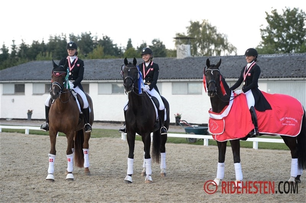 Herefter var det tid til den første af de to finaler for mesterskaberne, nemlig juniorernes mesterskab. Der var nok ikke den store tvivl om hvem guldmedaljen ville tilfalde og den blev heller aldrig i fare for Victoria E. Vallentin. Hun formåede nemlig at ride en kür til hele 76.27% på Atnon e. De Noir/Akinos, som var mere end bare nok til at sikre mesterskabet og derved få hænget guldet om halsen med hele 11% ned til sølvmedaljen. Efter at have ligget nummer tre de sidste to dage, formåede Laura Hviid og Denzel e. De Niro/Weltmeyer at avancere til en samlet andenplads i mesterskabet, hvor hun i sin kür blev belønnet med 72.20% og derved kunne modtage en sølvmedalje. Camilla Søndberg Thomasberg Andersen på Rafaella K e. Skovens Rafael/Blue Hors Hertug, måtte i dag tage til takke med en samlet tredjeplads. Parret lå ellers på en andenplads inden finaledagen, men måtte se sig slået i det samlede regnskab med 0.3% af Laura, men de formåede at holde fast i bronzemedaljen.