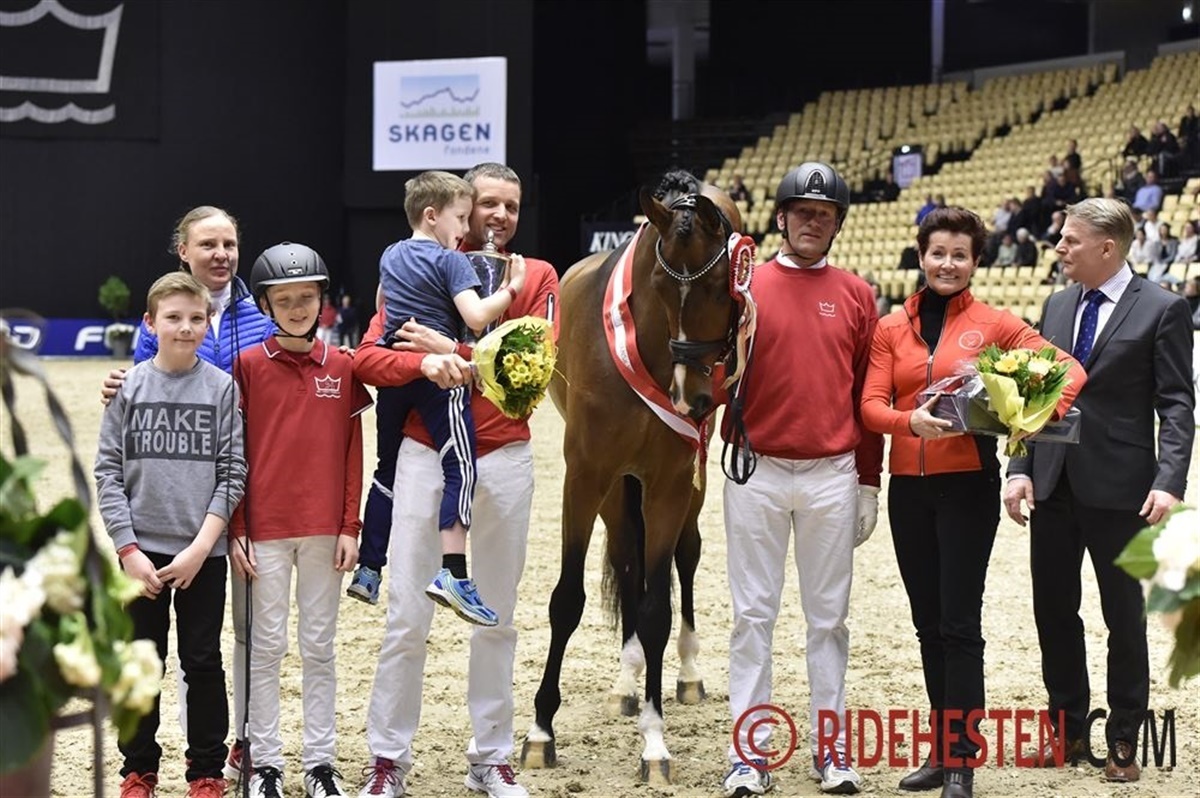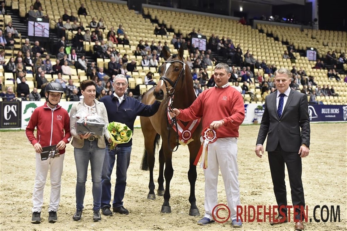 Der var ingen tvivl hos dommerne om, at Aage Ravns vandrepokal skulle gå til Hesselhøj Donkey Boy, som er ud af en særdeles præstationsstærk morstamme. Hingsten var sidste år den mest benyttede dressurhingst i dansk hesteavl. - Og han kan blive en stræk kandidat til næste års UVM og dermed følge op på de tidligere medaljer Dansk Varmblod har opnået her. Tillykke med guldmedaljen og titlen som fløjhingst, og de forventninger, som følger med, sagde Karina Christiansen også.