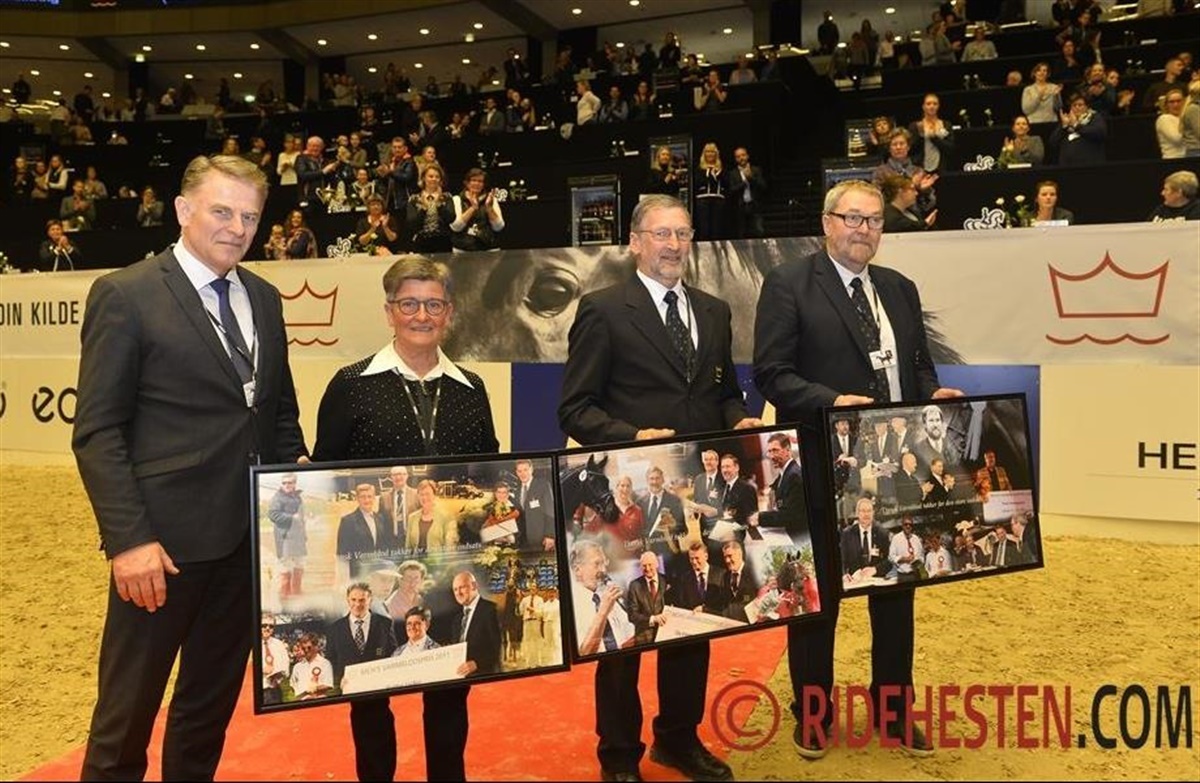 Birthe Lyder Nielsen, Ole From Christensen og Poul Graugaard har betydet uendeligt meget for udviklingen i Dansk Varmblod og for den succes de danske heste nyder også i udlandet. De tre går nu på pension, men de blev hædret med stående ovationer i hallen.