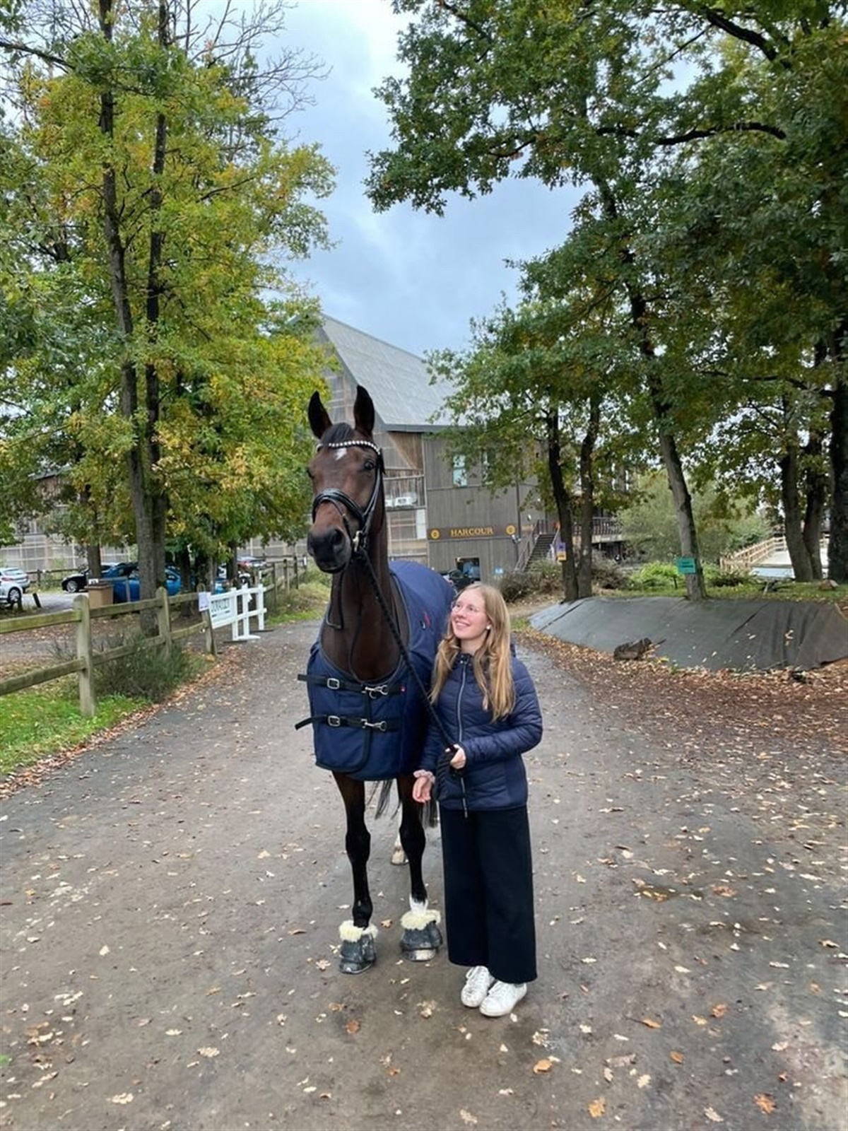 Med den 9-årige, brune hoppe, Fleurie, er hun til start i ungrytterklasserne, idet dette er hendes sidste år som juniorrytter, da hun falder for grænsen til næste år. Stævnet er nemlig en oplagt mulighed for Karoline til at øve sig i det næste niveau, som hun fortæller er svært, men sjovt at prøve kræfter med. På trods af et par fejl i galoppen fredag endte ekvipagen på en flot sjetteplads i Prix Sct. Georges og melder klar til MA2 i dag.