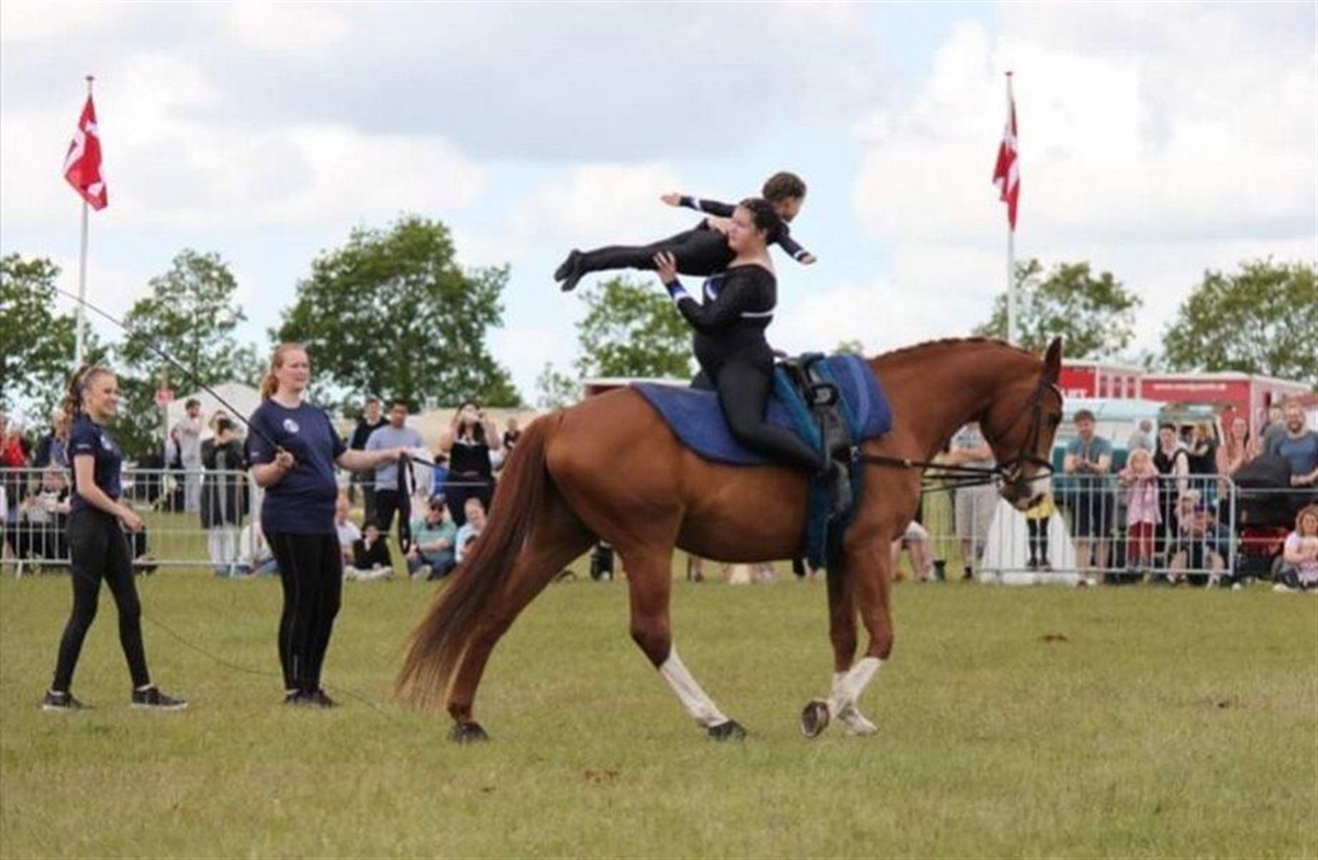 I weekenden holdt voltigeholdet opvisning på Gl. Estrup, hvor de øvede voltigører gav opvisning den ene dag og klubholdet den anden dag, og så er der planlagt, at de også vil lave en opvisning til klubbens årlige åbent hus den 17. juni fra kl. 17 til 18.00.