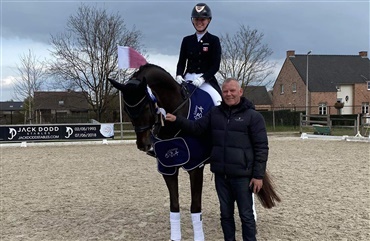 Paradressurrytter Karla Dyhm Junge har i denne weekend taget sin PL-makker, den 15-årige DV-hoppe Miss Daisy e. De Noir 3/ Blue Hors Future Cup (opdr. Marianne Brinck Stengaard) med til det internationale Quadrille-stævne i Waregem, Belgien. Parret er den eneste danske ekvipage til start, men til trods for det, er Dannebrog altså strøget til tops i samtlige af Karla og Daisys klasser.