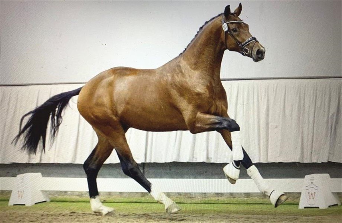 Westfalerhingstekåringens mest eftertragtede hingst på auktionen, den nykårede præmiehingst e. Vitalis/ Fidertanz/ Sandro Hit, er sikret på danske hænder, idet Helgstrand Dressage fik det afgørende bud på den ganggevaldige hingst med det flotte format.