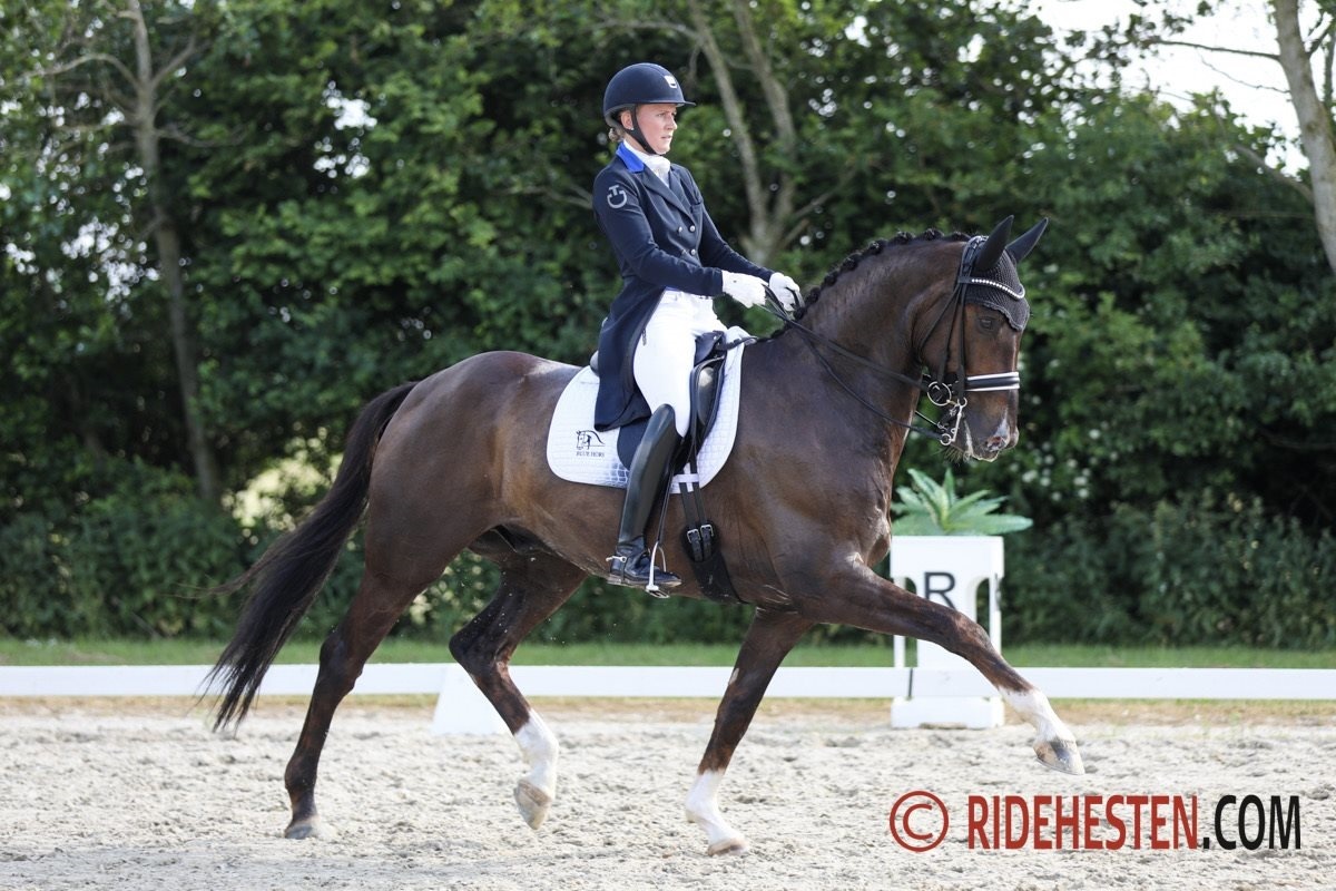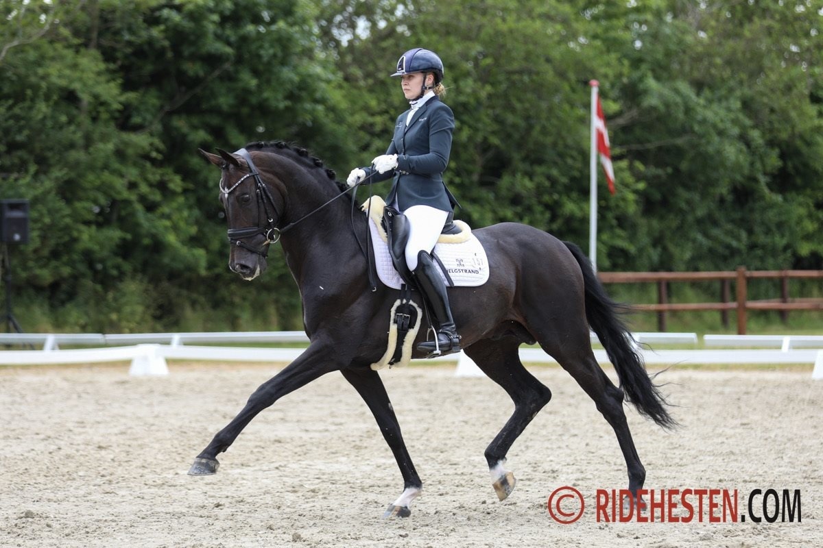 På andenpladsen blev det Karoline Louise Skøt som med Søgaards Bon Royal e. Bon Bravour/De Noir (opdr. Stald Søgaard) red til 78,113%.
