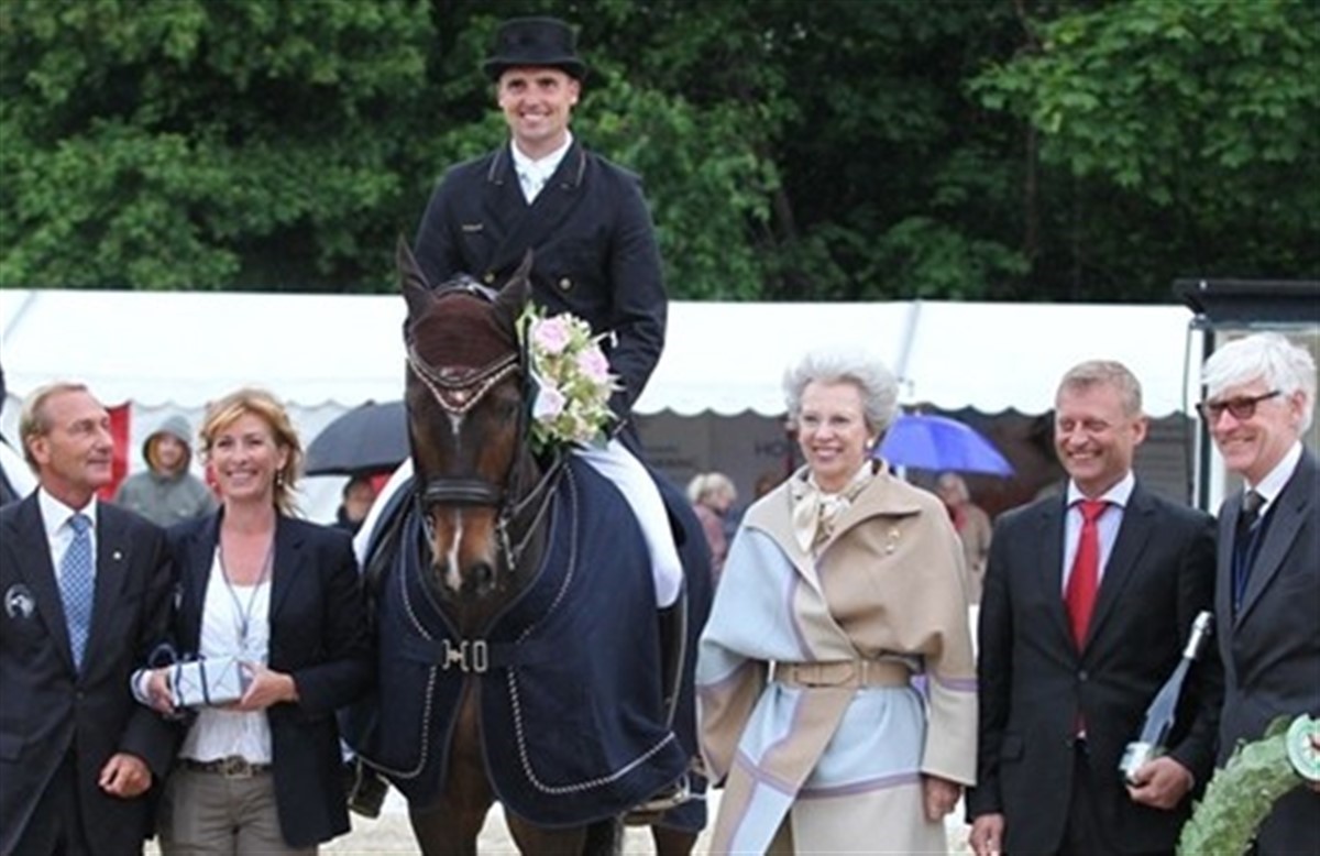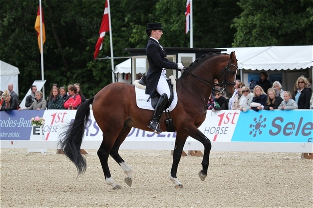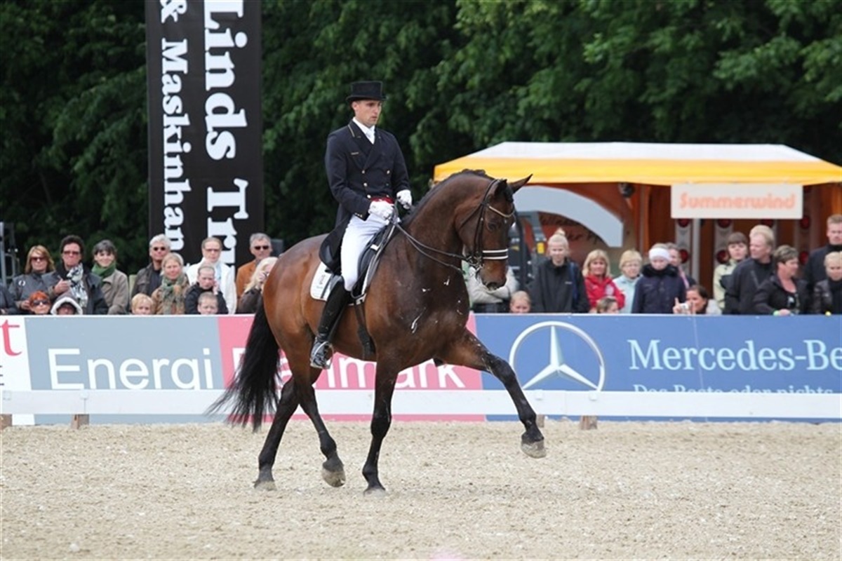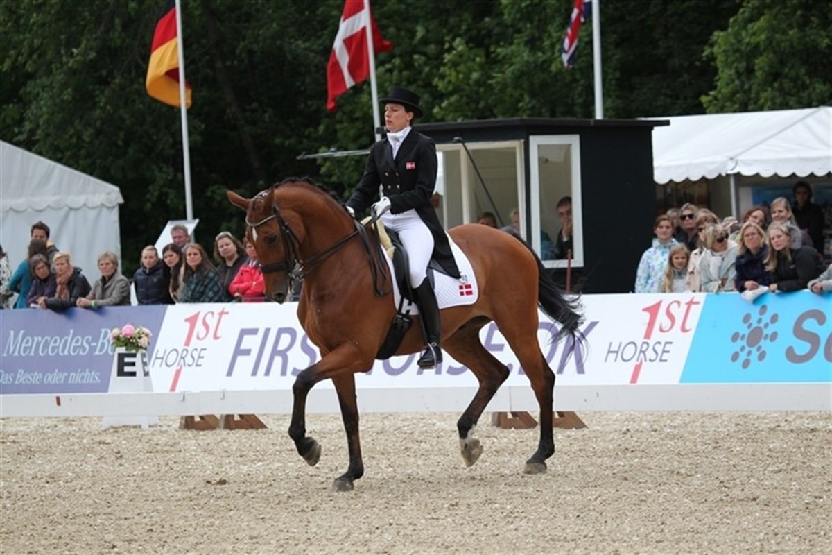 Det blev et rent Skandinavisk opgør, da First Horse Grand Prix Kür blev afviklet med tv-dækning i Bernstorffsparken. Den 23-årige norske landsholdsrytter Lillann Jebsen, der trænes af Hasse Hoffmann på Søholdt lagde sig i spidsen af klassen på Pro-set e. Jet Set D. Hun viste bl.a. perfekte cirkler med henholdsvis etter og toer changementer og det var medvirkende til at give hende 73,8% Finske Mikæla Lindh, der driver Dressurstald Sølyst på Sjælland, havde truffet et modigt og interessant musikvalg, hun og Skovlunds Mas Guapo e. Master blev belønnet med 73,475% Andreas Helgstrand red på banen som klassens næstsidste rytter. Hans samarbejde med Marron e. Michellino er blot nogle få måneder gammelt, men hesten viser et godt potentiale og stort talent for passage og piaffe. - Jeg er meget tilfreds med mit ridt på Marron i dag, især galopprogrammet var bedre end i Grand Prix'en i fredags, fortalte Helgstrand, der i fredags sluttede på tredjepladsen.