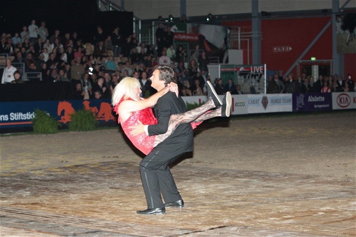 Publikum fik chancen for at se Tina og Tobias danse deres smægtende vals live i Arena Fyn her til aften, hvor parret gav en prøve på, hvorfor de er så populære i Vild med dans - det slog på det nærmeste gnister mellem Tina og Tobias, og der var noget både yndigt og eventyragtigt over deres optræden. Dommerne var: Hanni Toosbuy Kasprzak, Kjeld Kirk Kristiansen og værten fra Vild med dans Claus Elming. De blev naturligvis meget imponerede af Tina og Tobias vals, som Hanni så smukt sagde, så var der både bæring, indundergriben og løft i deres dans. Tina og Tobias kom dog op imod et par, som tydeligvis havde trænet benhårdt og målrettet frem mod denne begivenhed. Jensine (alias Jens Trabjerg) var iført den "øøøndigste" kreation i rødt, mens Bo stilfuldt stillede op i mørkt jakkesæt. Jensine kastede de lange, afblegede lokker koket tilbage over skulderen, mens Bo forsøgte at få pulsen i vejret hos den kvindelig del af publikummet. Deres dans blev fuldt af jubel brøl og taktfaste klapsalver, og der var kun et ord der kunne beskrive det, ifølge Claus Elming - modigt! Da de to par stod lige måtte der omdans til, en omdans som Jens og Bo takkede nej til - fysikken slog ikke til - og så kom Tina og Tobias på dansegulvet og leverede en forrygende cha cha, som igen fik salen til at koge.